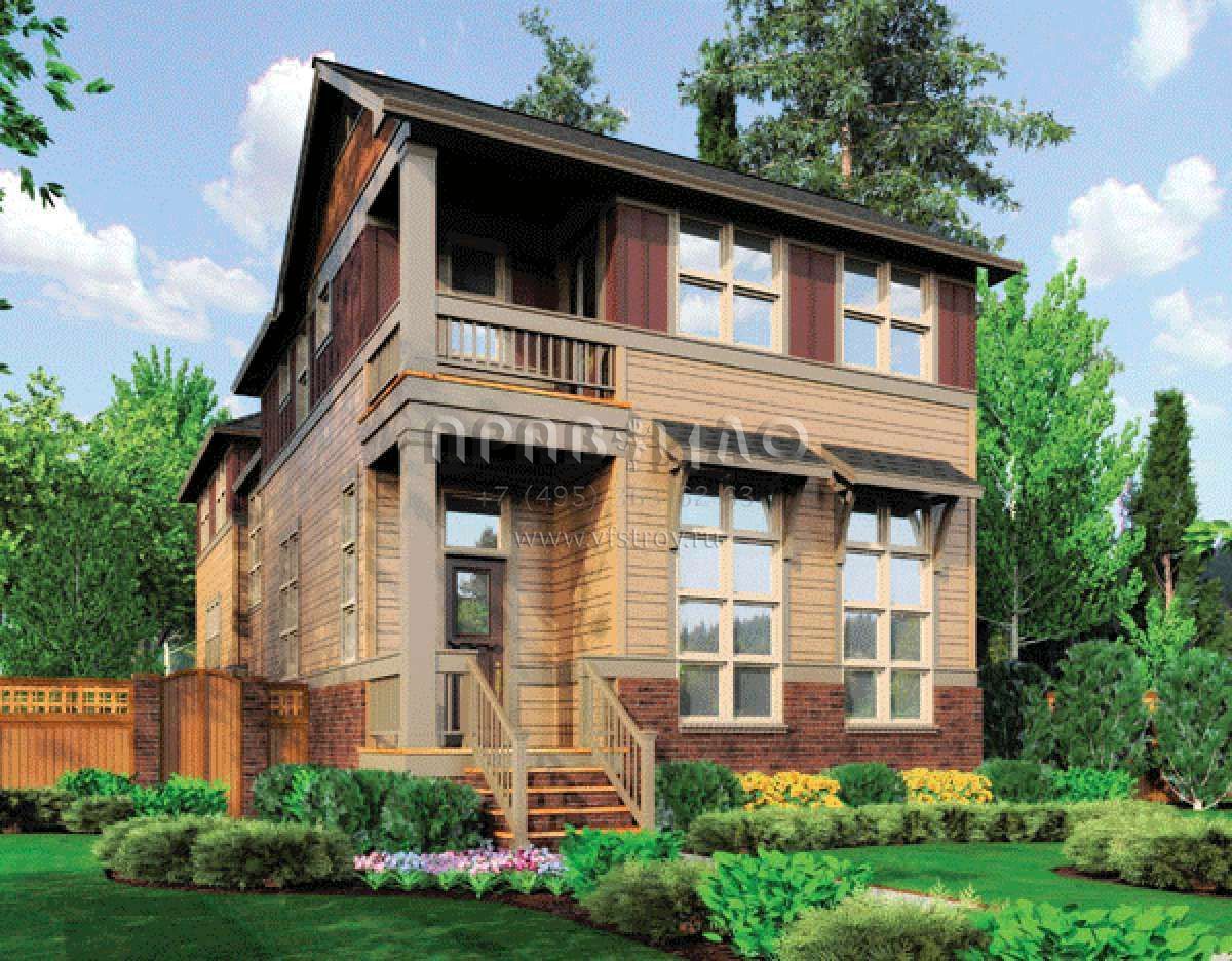 Двухэтажный проект дома позволяет рационально распорядиться площадью участка небольшого размера или узкой формы. На первом этаже находятся общие комнаты (гостиная/столовая, кухня, подсобные и технические помещения), на втором — спальни членов семьи.