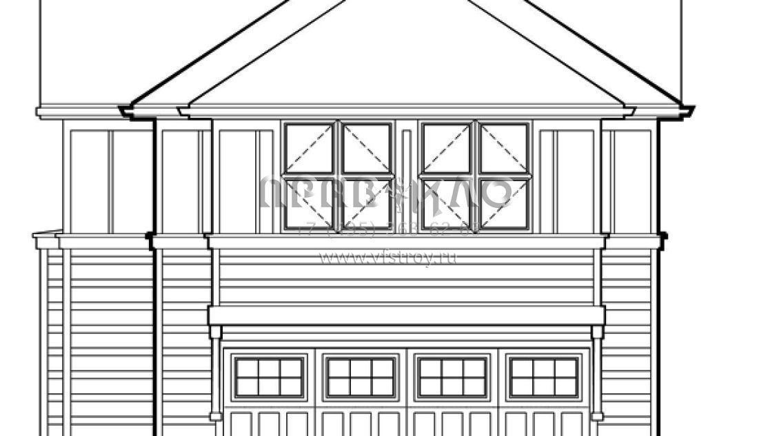 Это проект двухэтажного дома с гаражом на две машины жилой площадью 196 кв.м. Длина дома 21.3 м, ширина 8.2 м, высота 9.8 м. В доме три спальни и два санузла.