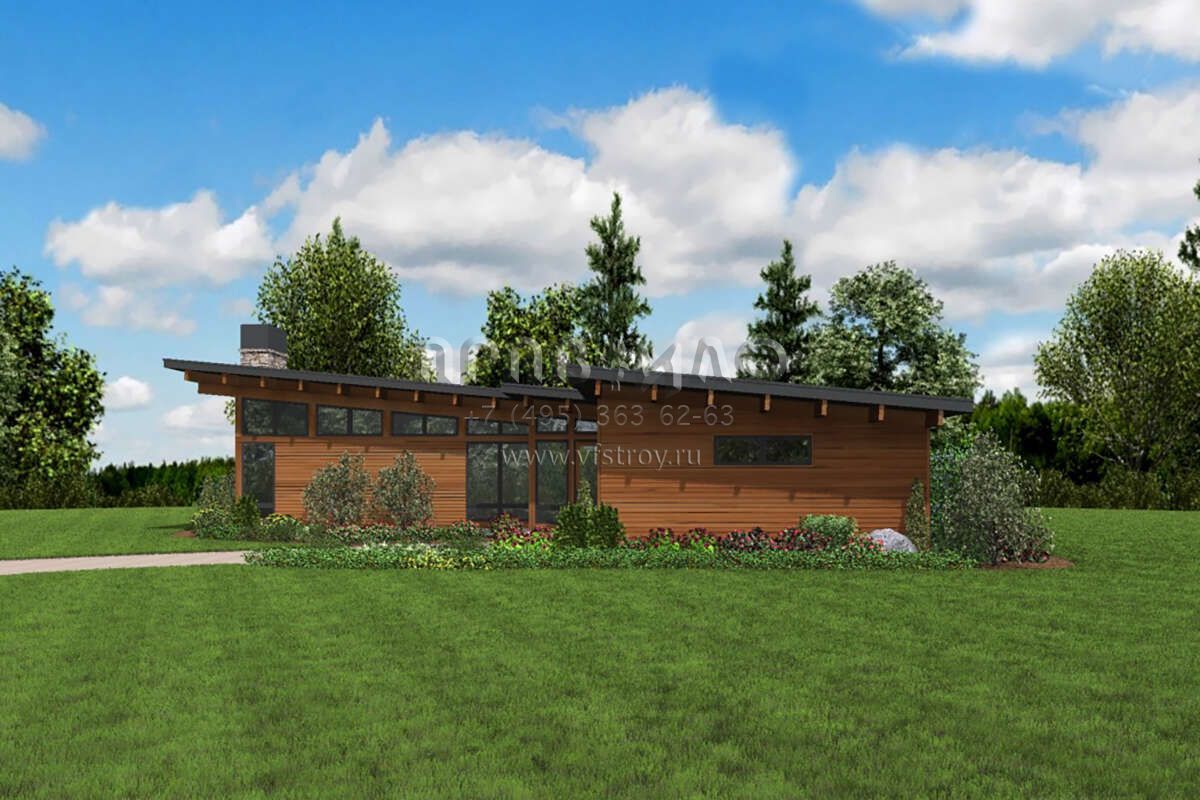 Большая площадь участка позволяет выбрать одноэтажный проект дома, особенно если в семье есть пожилые люди, инвалиды или маленькие дети.