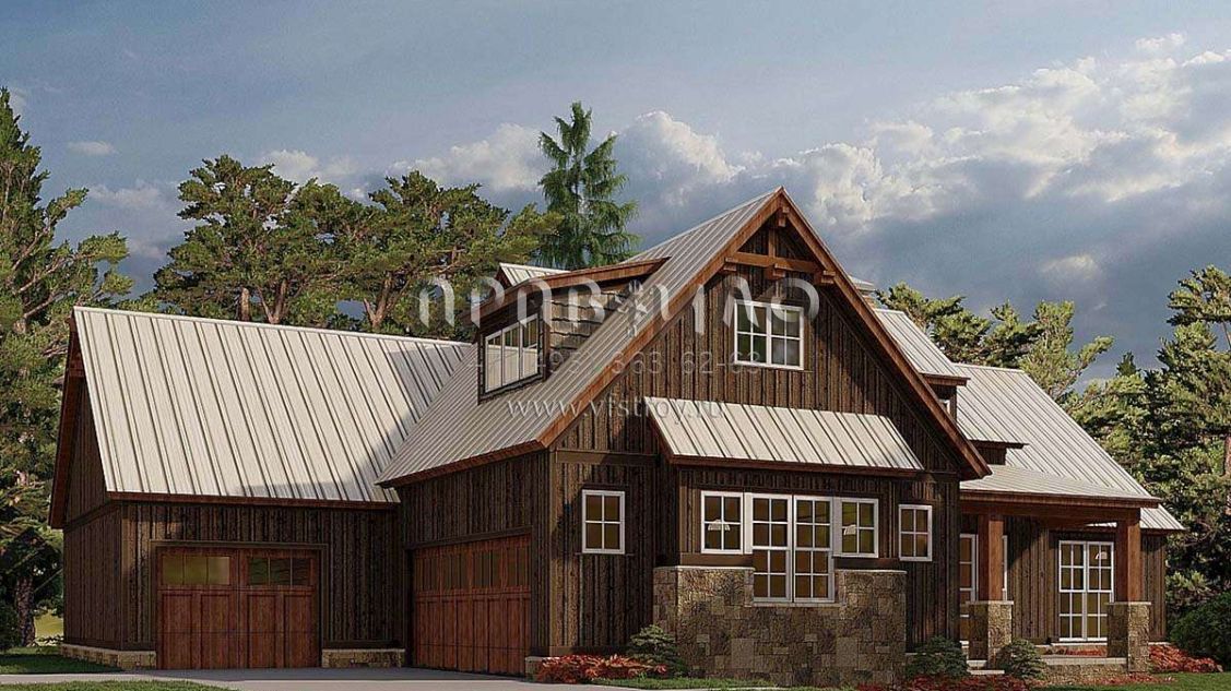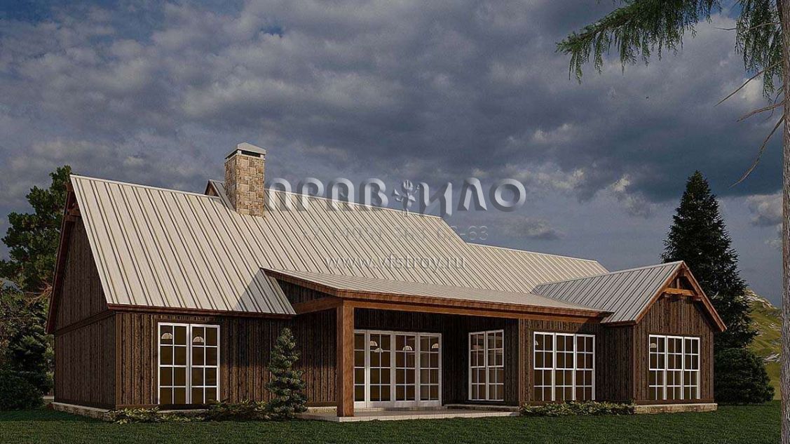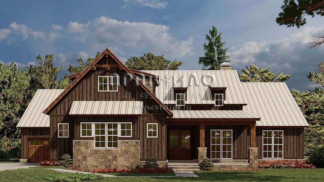 Проект одноэтажного дома с гаражом на три и более машин в стиле Шале S5-196 (8318-00188)