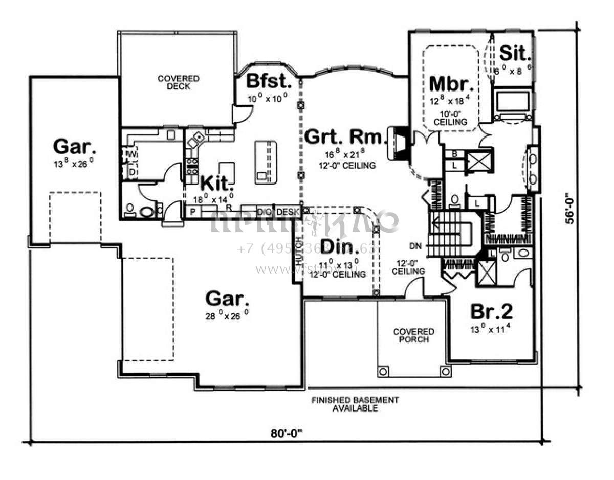 S5-196 (963-00049) Это иностранный проект, для которого требуется адаптация под нормы, действующие в Российской Федерации. Вы видите проект дома в английском стиле. В этом доме сочетаются черты сельской постройки и аскетичность лофта. Внутри жильцы смогут проводить время с максимальным комфортом. Обратим внимание, что сейчас на планировках все размеры представлены в футах. Для перевода в метры вам необходимо значение в футах умножить на 0,3048.