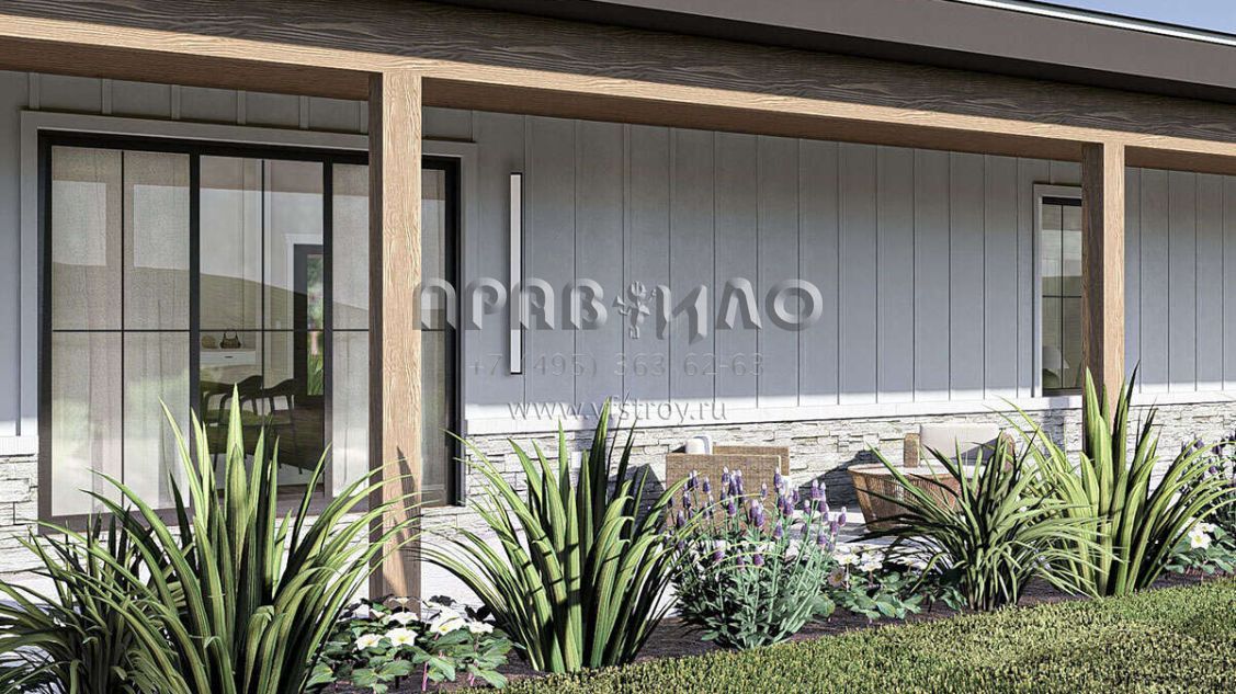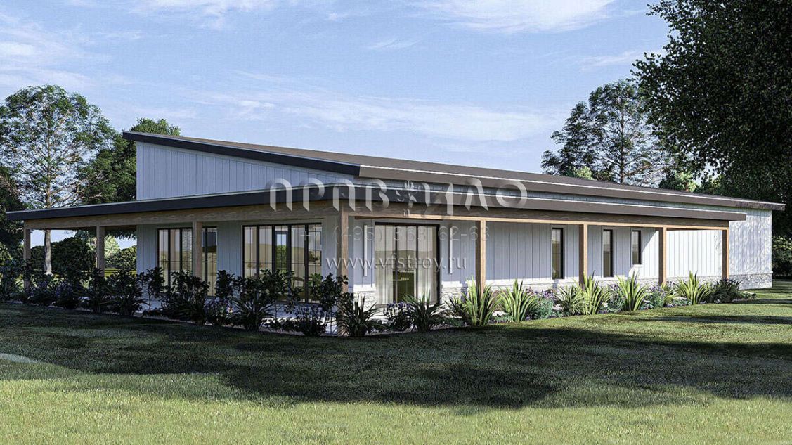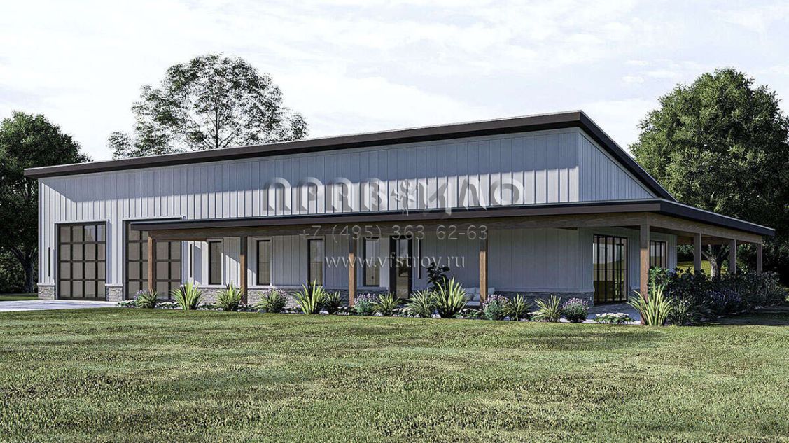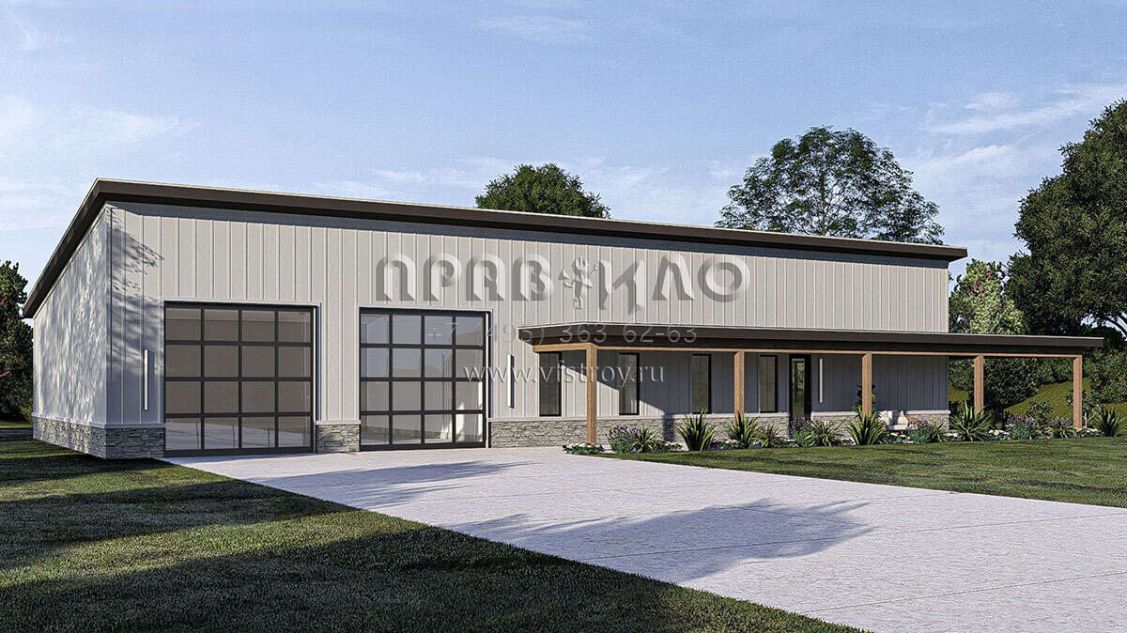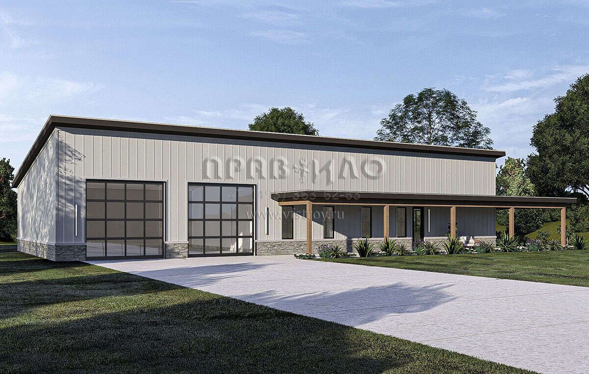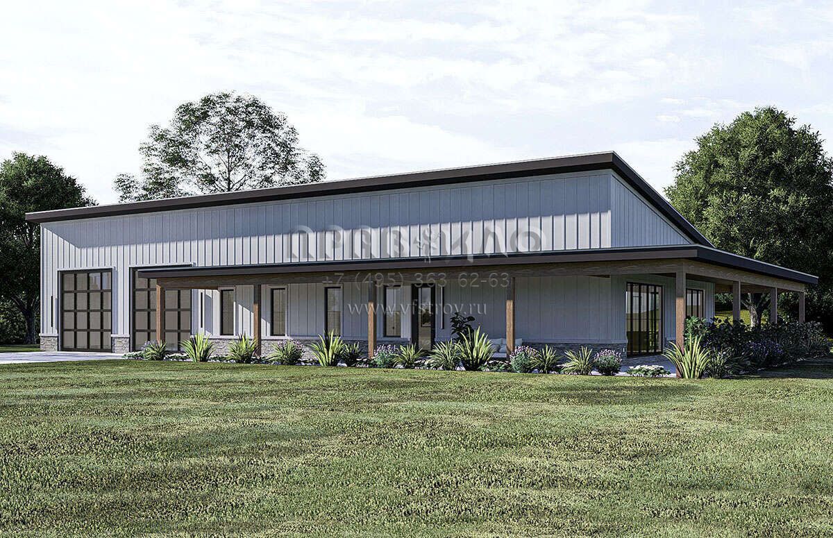 Проект одноэтажного дома с гаражом на две машины в стиле БарнХаус S5-196 (963-00888)