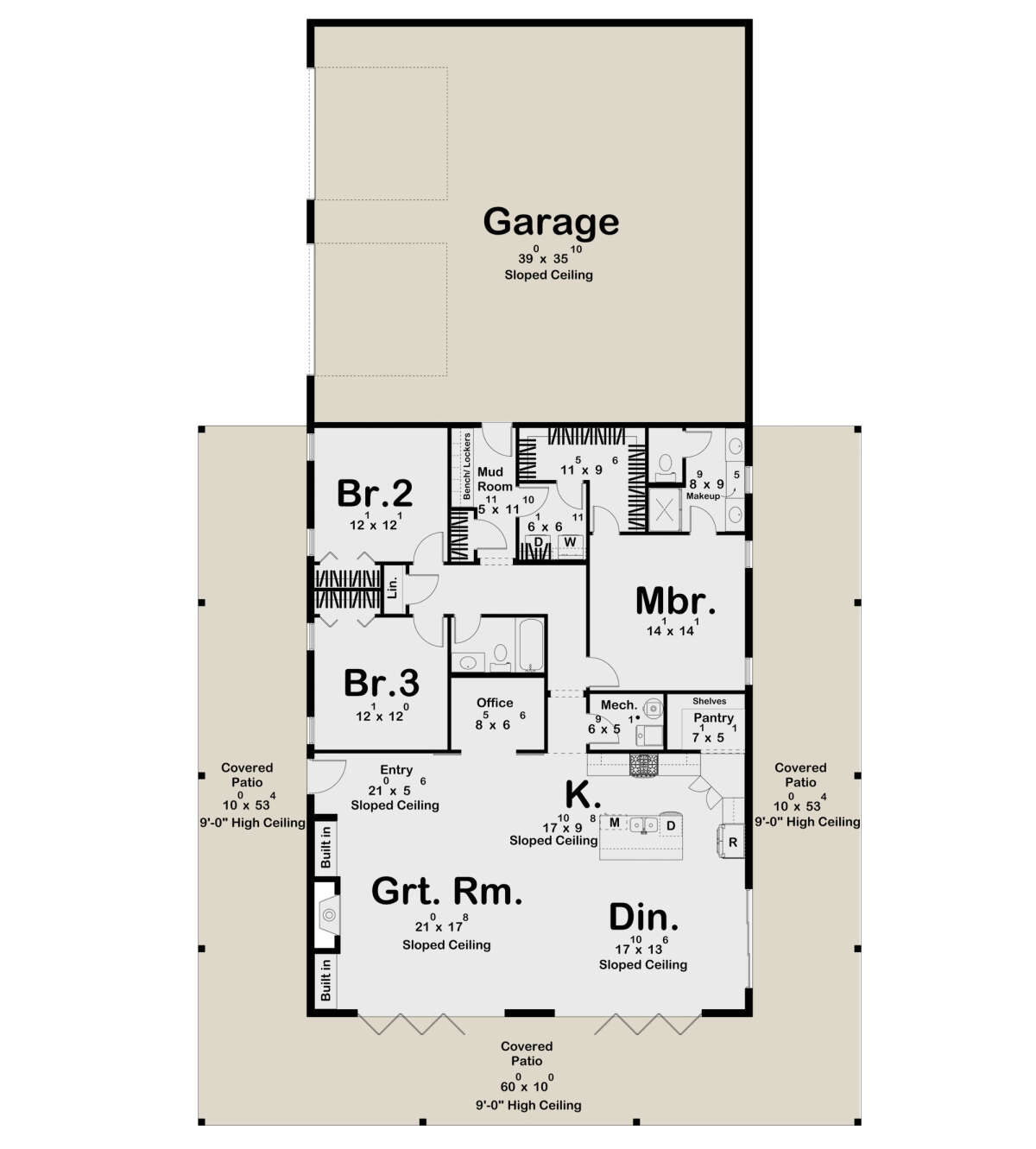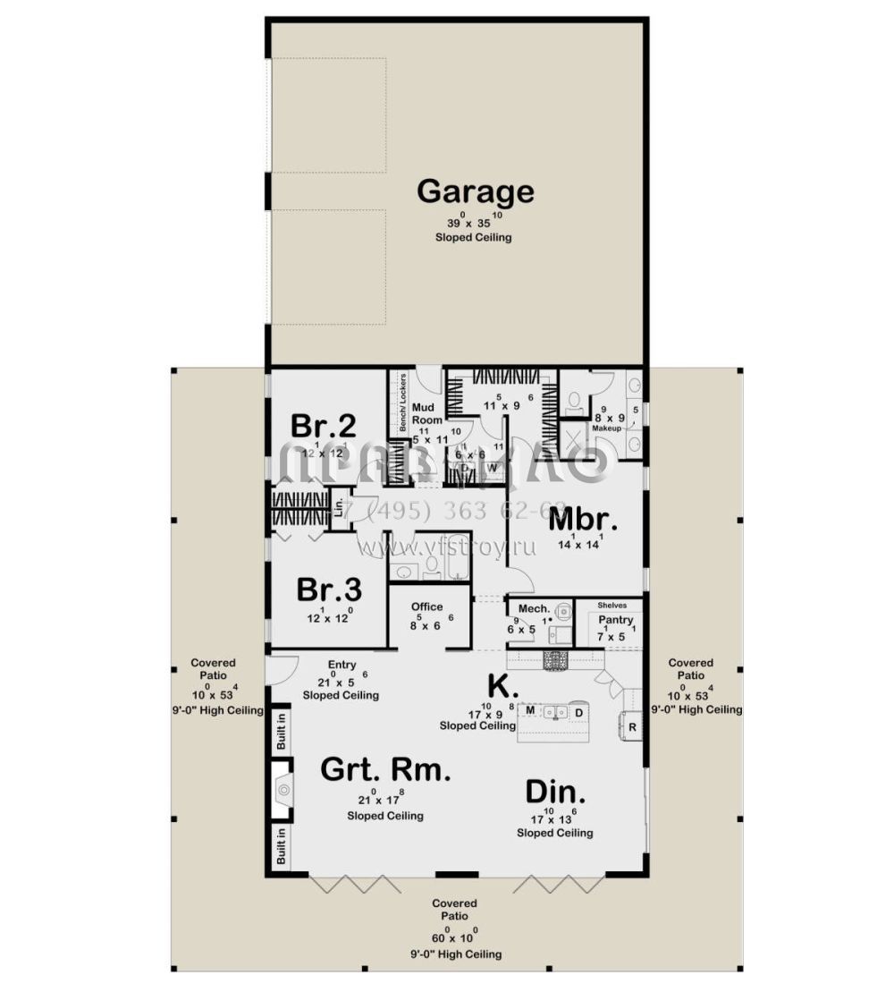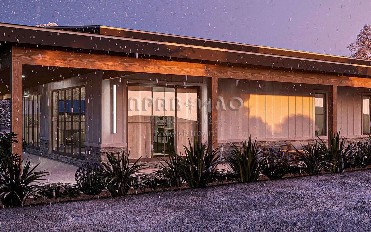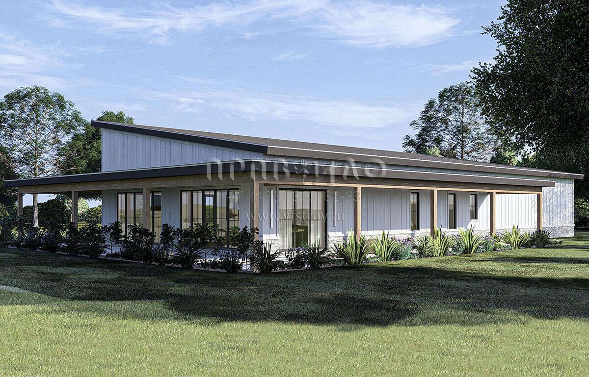Проект одноэтажного дома с гаражом на две машины в стиле БарнХаус S5-196 (963-00888)