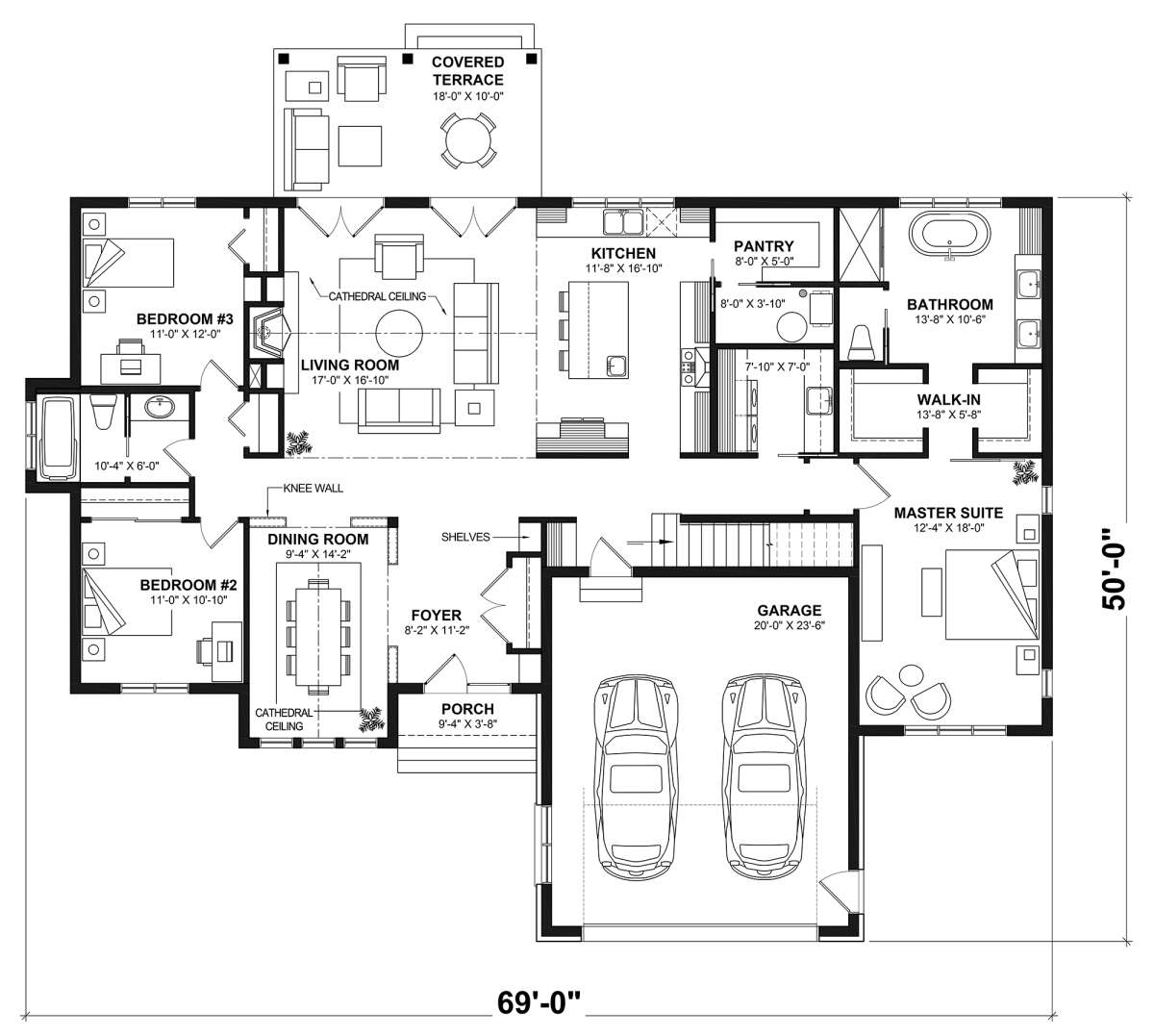 Проект одноэтажного дома с гаражом на две машины в современном стиле S5-197 (034-01249)