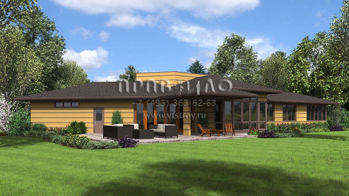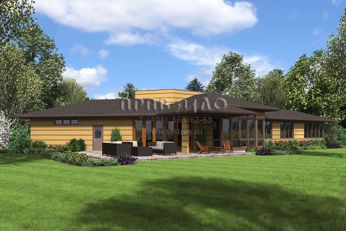 Большая площадь участка позволяет выбрать одноэтажный проект дома, особенно если в семье есть пожилые люди, инвалиды или маленькие дети.