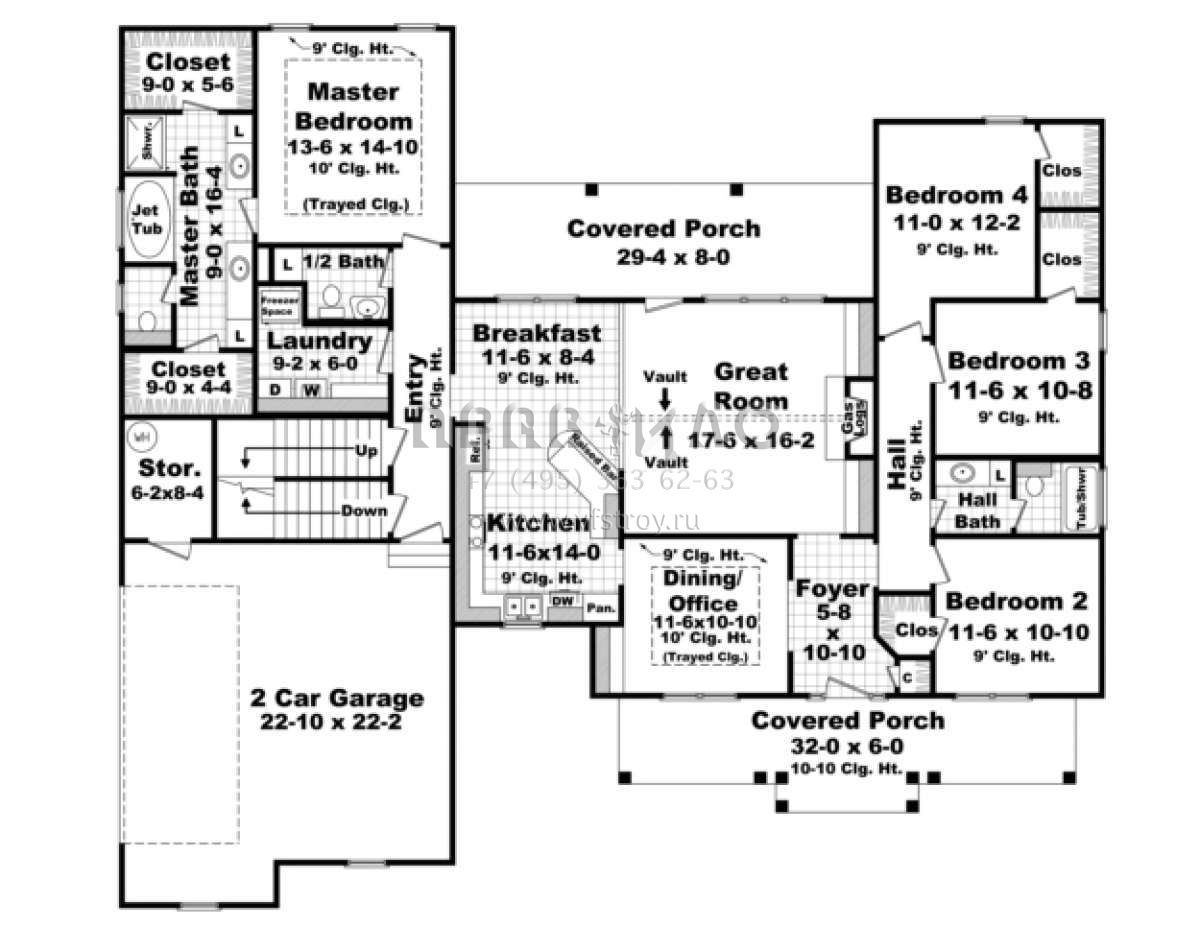 Проект одноэтажного дома с гаражом на две машины в стиле Ранчо S5-197 (348-00183)