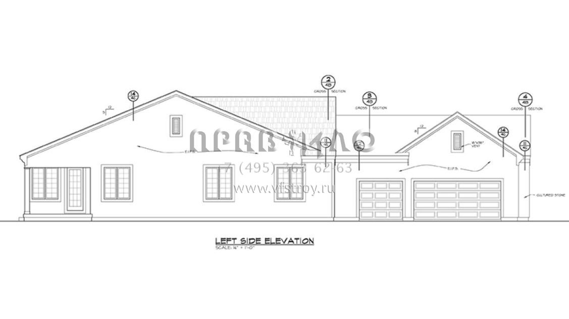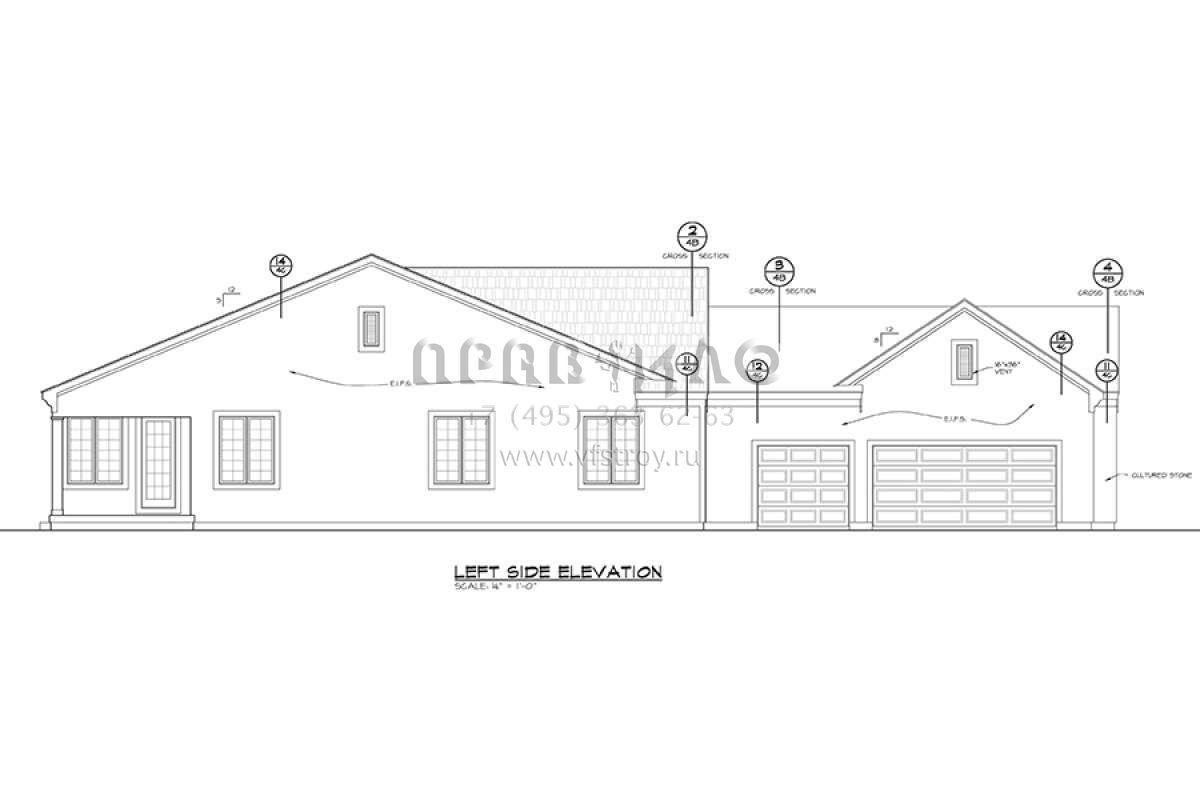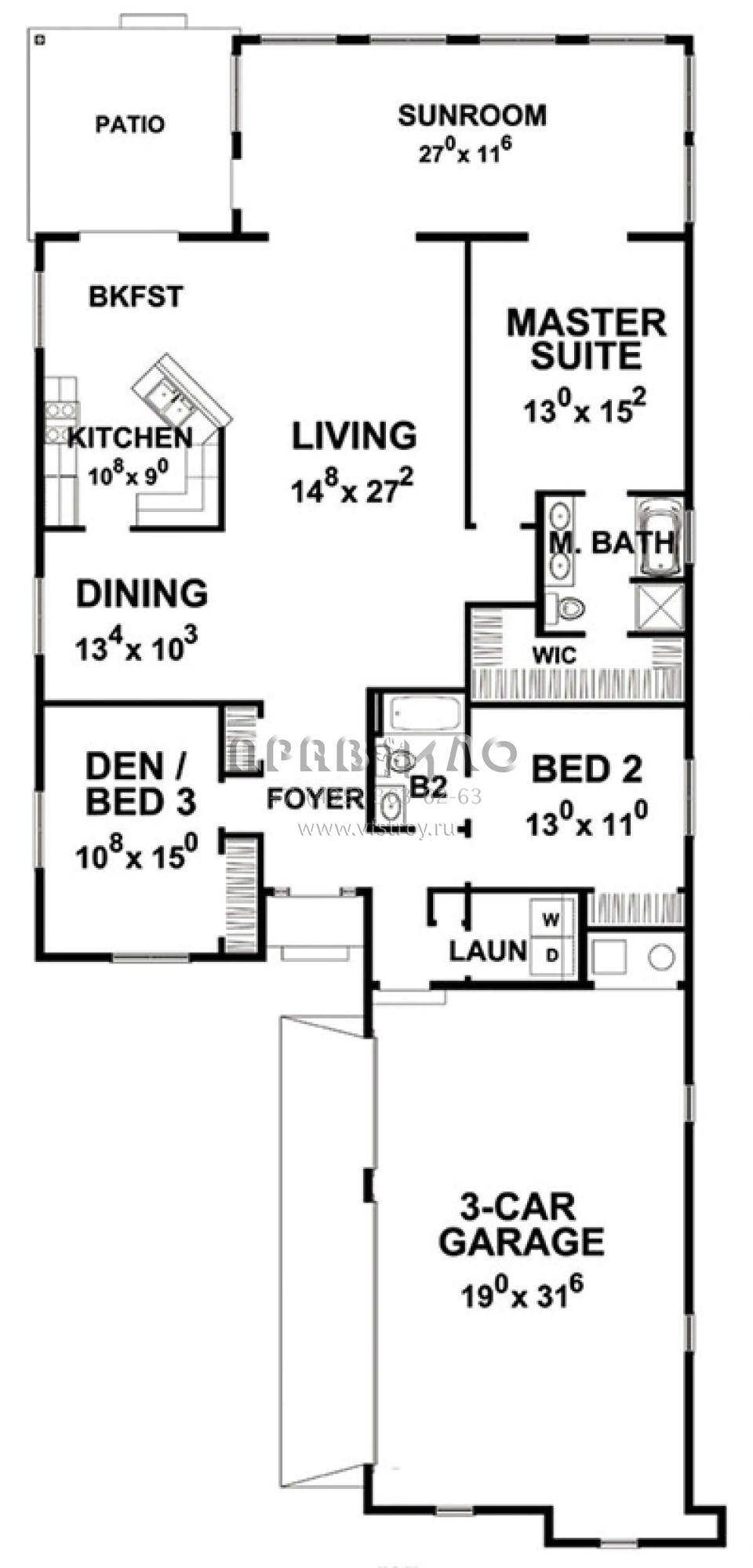 S5-197 (402-01466) Это иностранный проект, для которого требуется адаптация под нормы, действующие в Российской Федерации. Вы видите проект дома в стиле Ранчо. В этом доме сочетаются черты сельской постройки и аскетичность лофта. Внутри жильцы смогут проводить время с максимальным комфортом. Обратим внимание, что сейчас на планировках все размеры представлены в футах. Для перевода в метры вам необходимо значение в футах умножить на 0,3048.