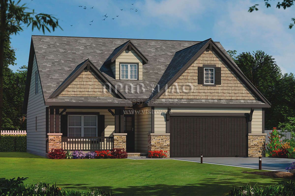 Проект двухэтажного дома с гаражом на две машины в американском стиле S5-197 (402-01541)