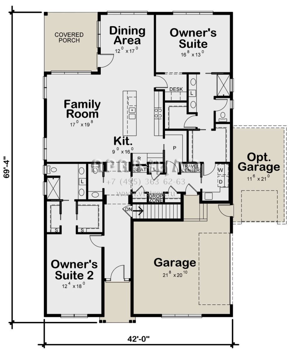 Проект одноэтажного дома с гаражом на две машины в стиле Ранчо S5-197 (402-01603)