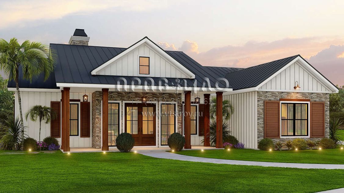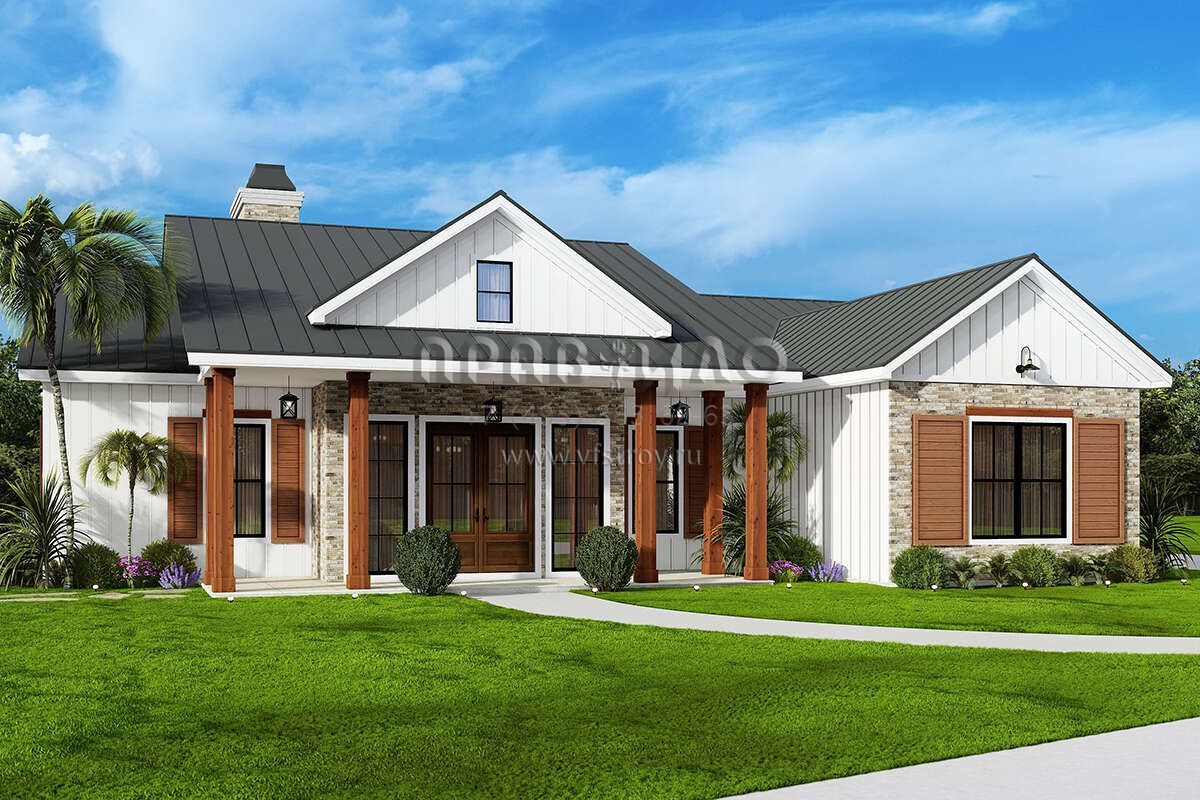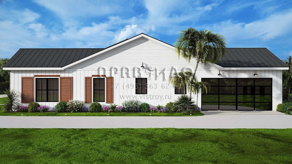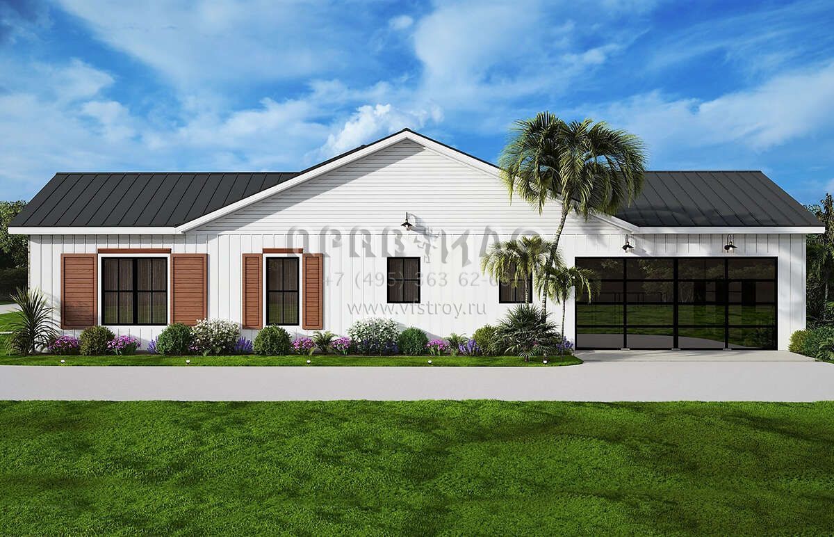 Проект одноэтажного дома с гаражом на две машины в современном стиле S5-197 (699-00346)