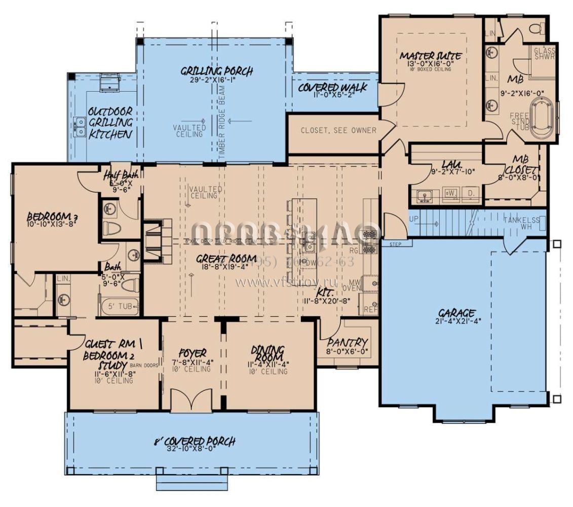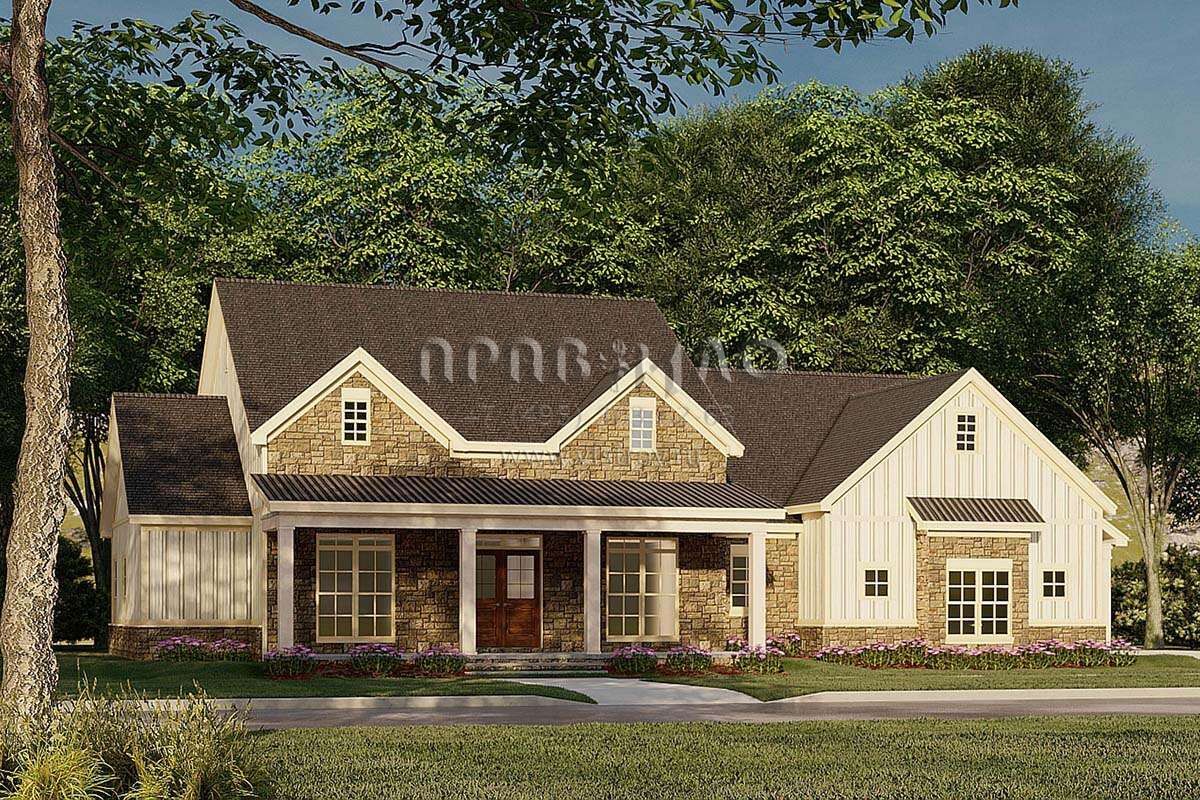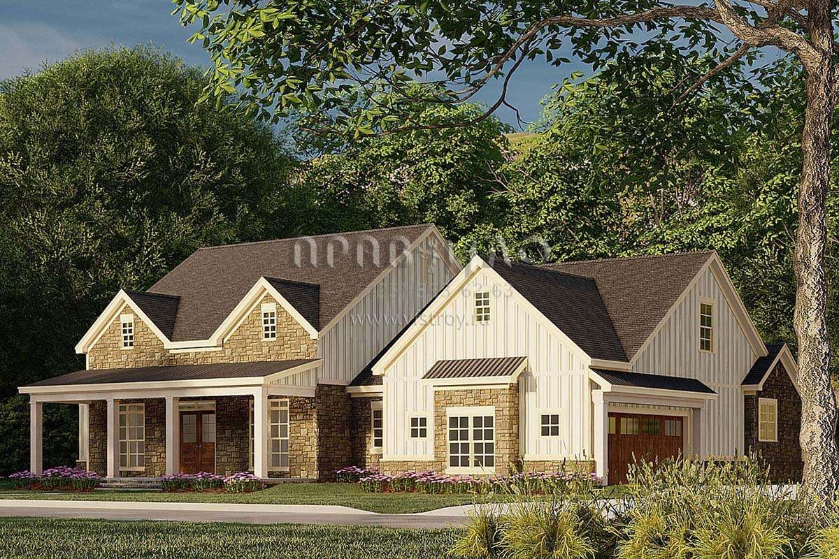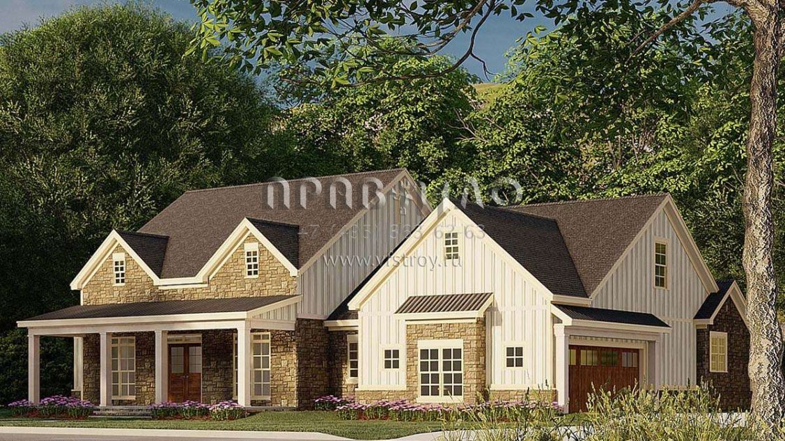 Проект одноэтажного дома с гаражом на две машины в стиле Ранчо S5-197 (8318-00191)
