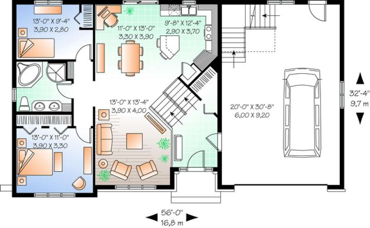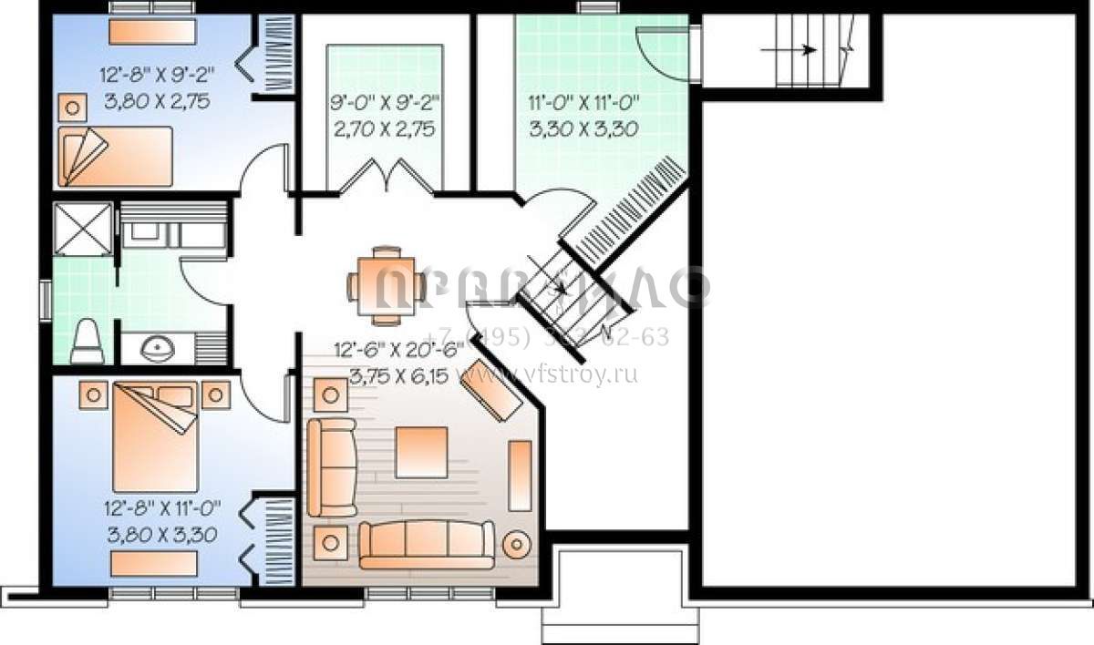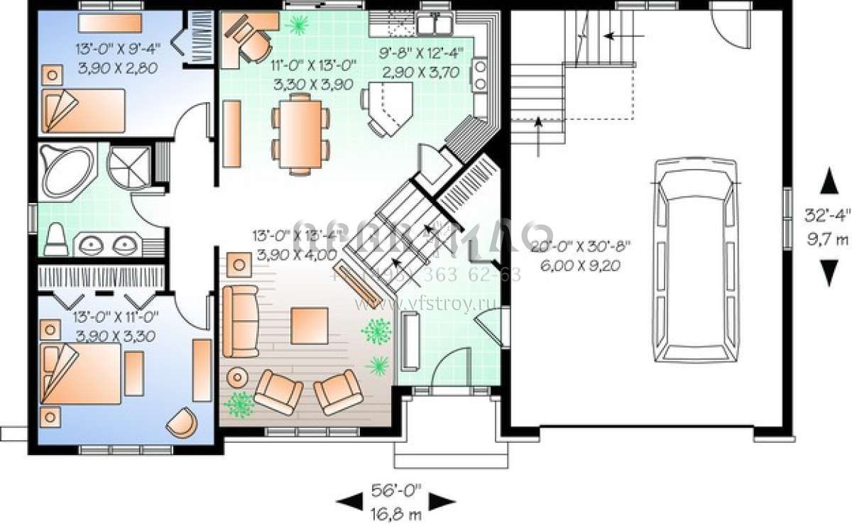 S5-198 (034-00681) Это иностранный проект, для которого требуется адаптация под нормы, действующие в Российской Федерации. Вы видите проект дома в стиле Ранчо. В этом доме сочетаются черты сельской постройки и аскетичность лофта. Внутри жильцы смогут проводить время с максимальным комфортом. Обратим внимание, что сейчас на планировках все размеры представлены в футах. Для перевода в метры вам необходимо значение в футах умножить на 0,3048.