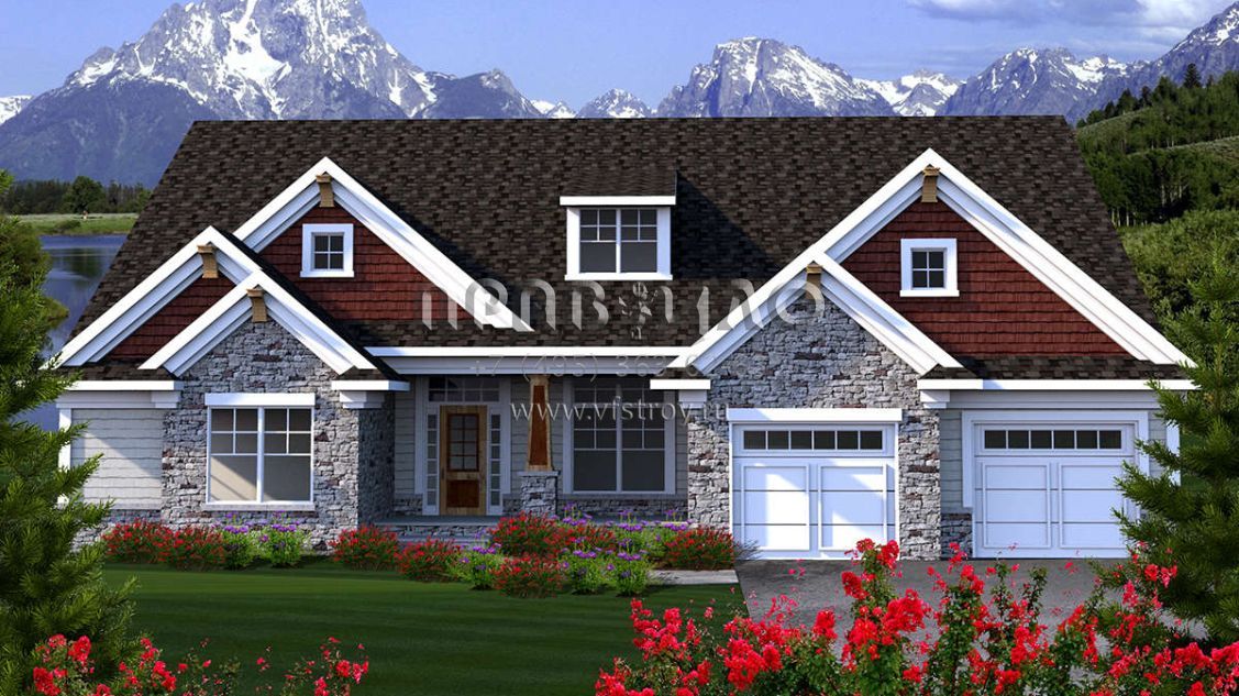 Проект одноэтажного дома с гаражом на две машины в американском стиле S5-198 (1020-00143)