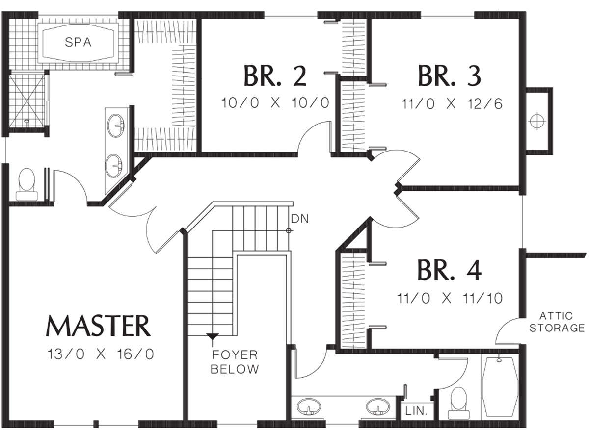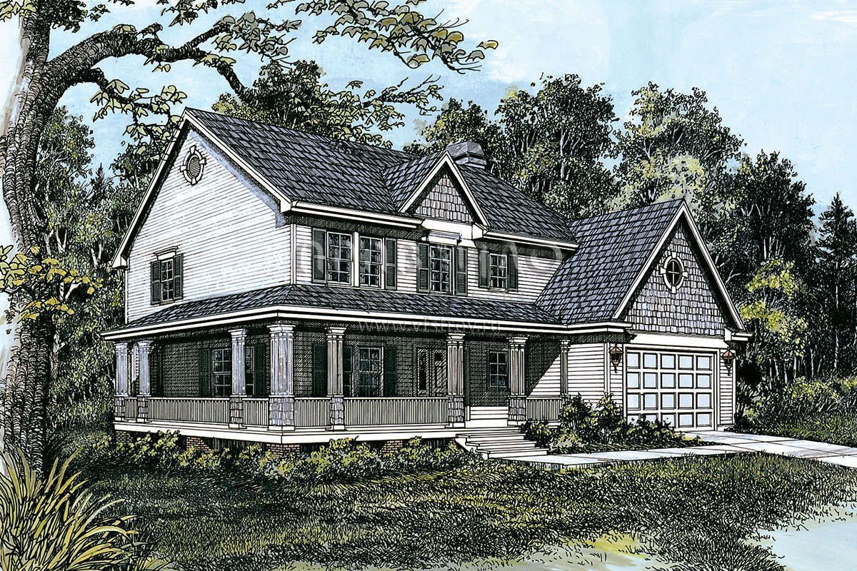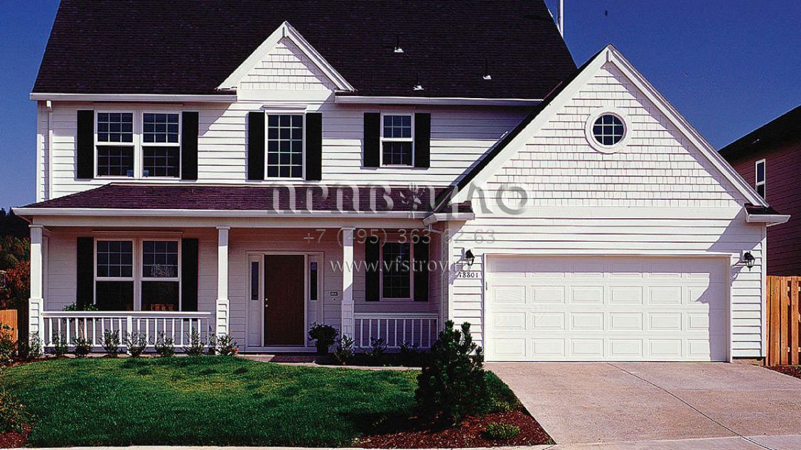 Это проект двухэтажного дома с гаражом на две машины жилой площадью 198 кв.м. Длина дома 12.2 м, ширина 15.2 м, высота 9.1 м. В доме четыре спальни и два санузла.