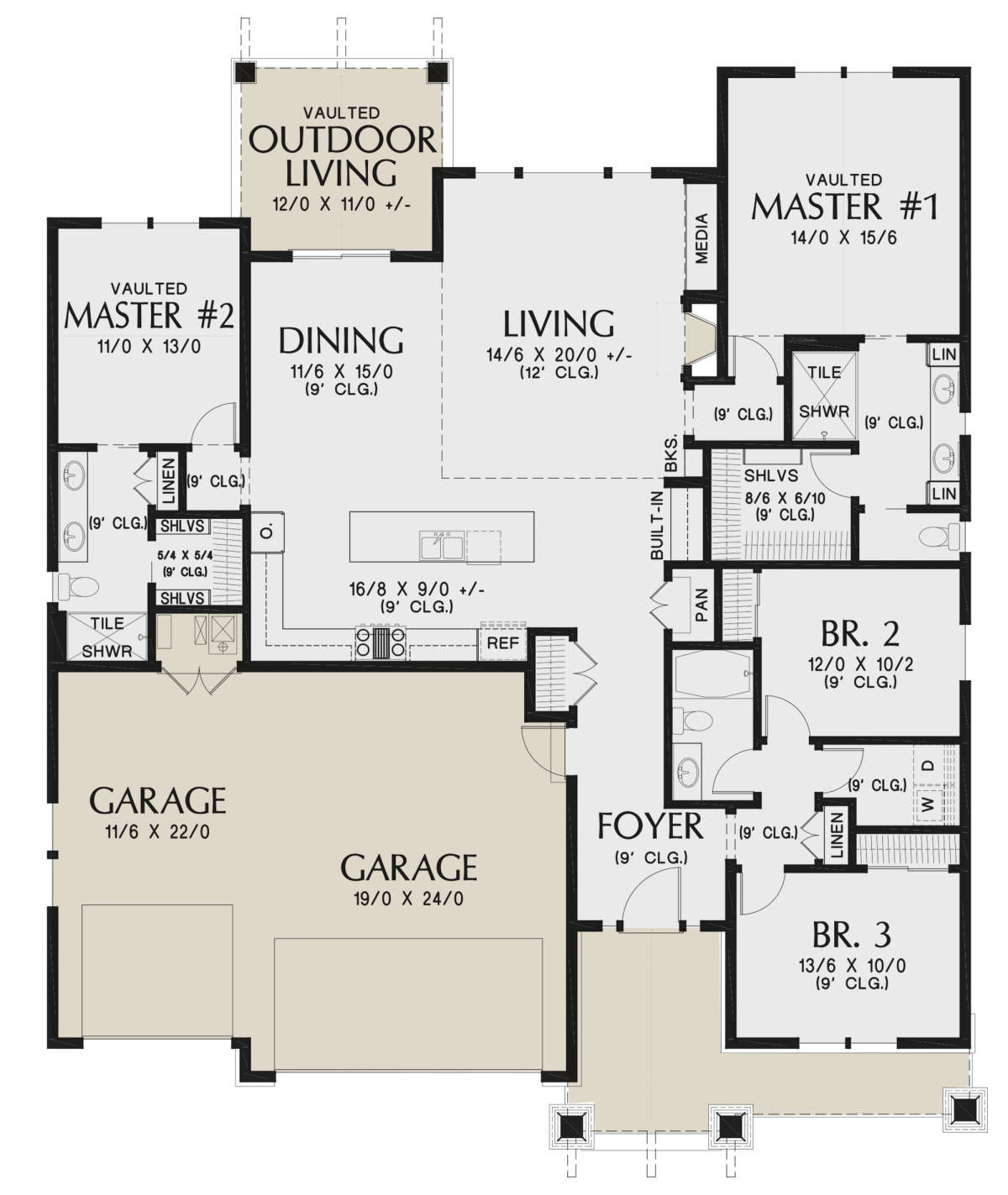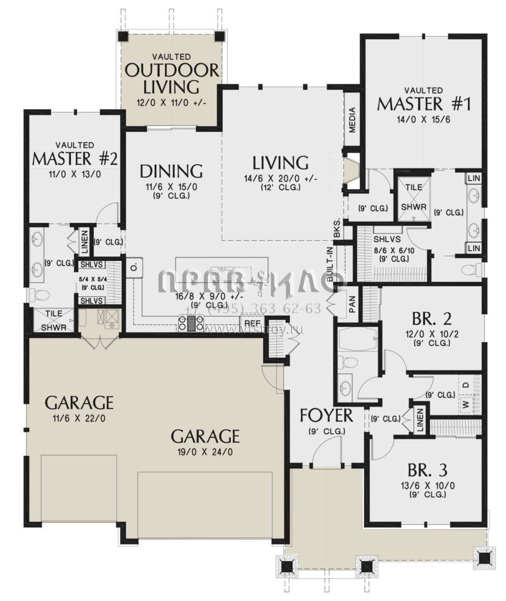 Проект одноэтажного дома с гаражом на три и более машин в скандинавском стиле S5-198 (2559-00826)