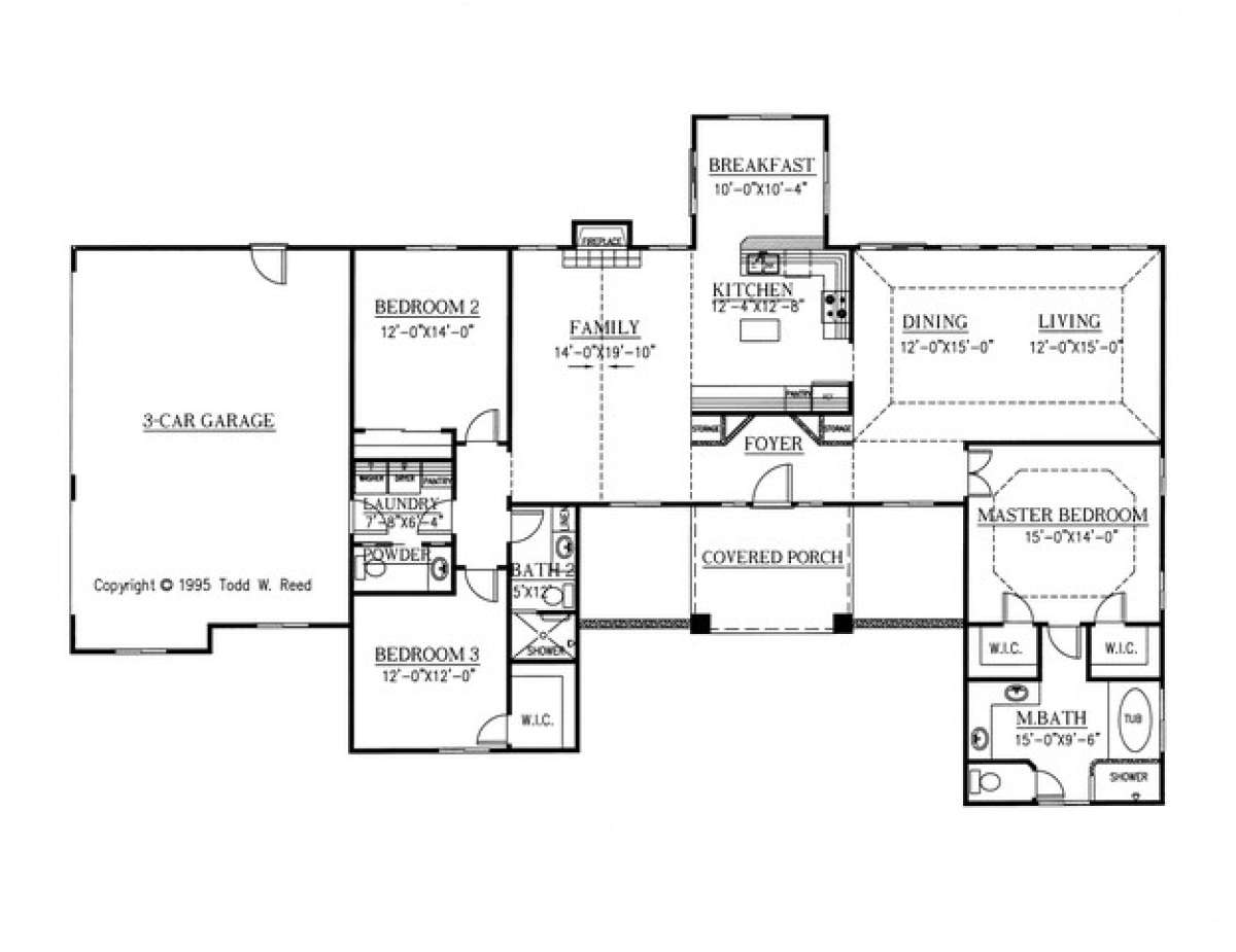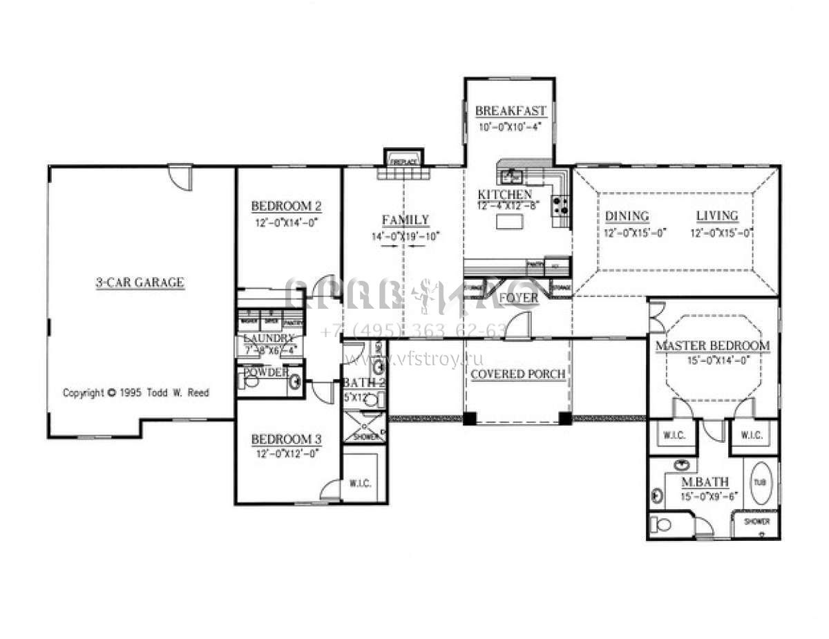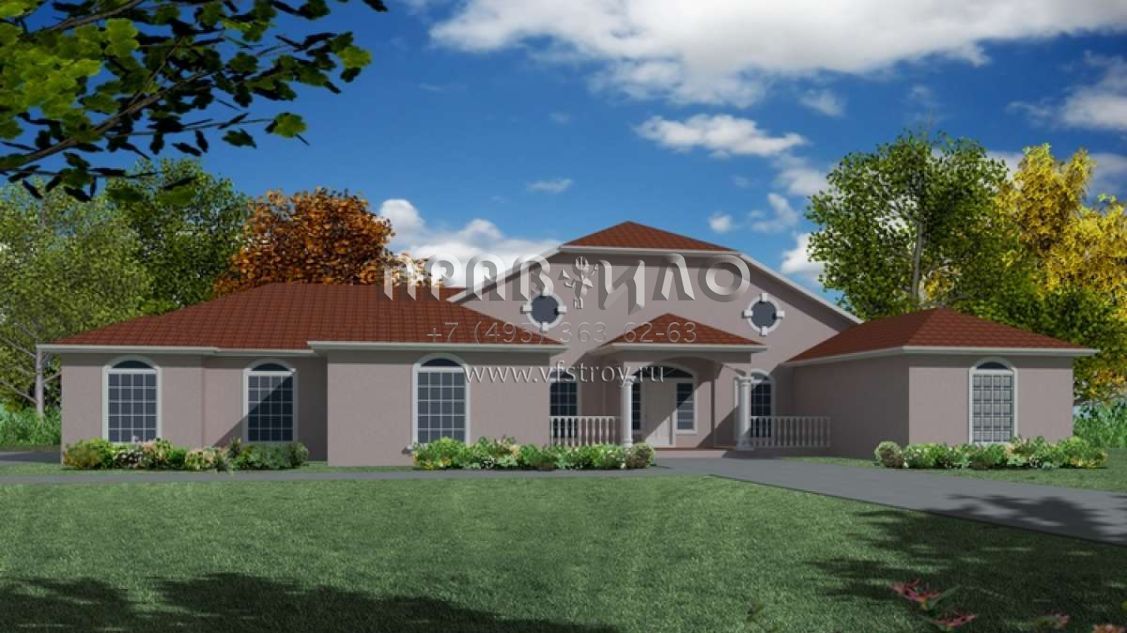 Проект одноэтажного дома с гаражом на три и более машин в стиле Ранчо S5-198 (286-00034)