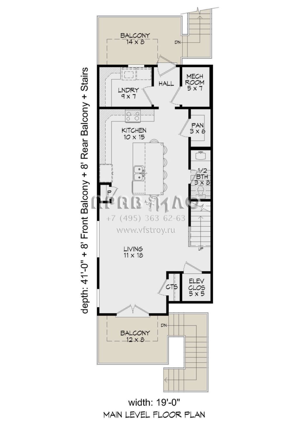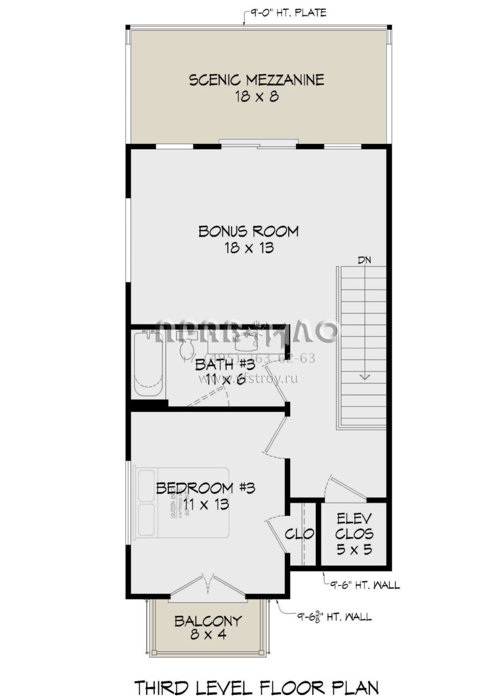 Проект узкого трехэтажного дома-вышки S5-198 (940-00917)