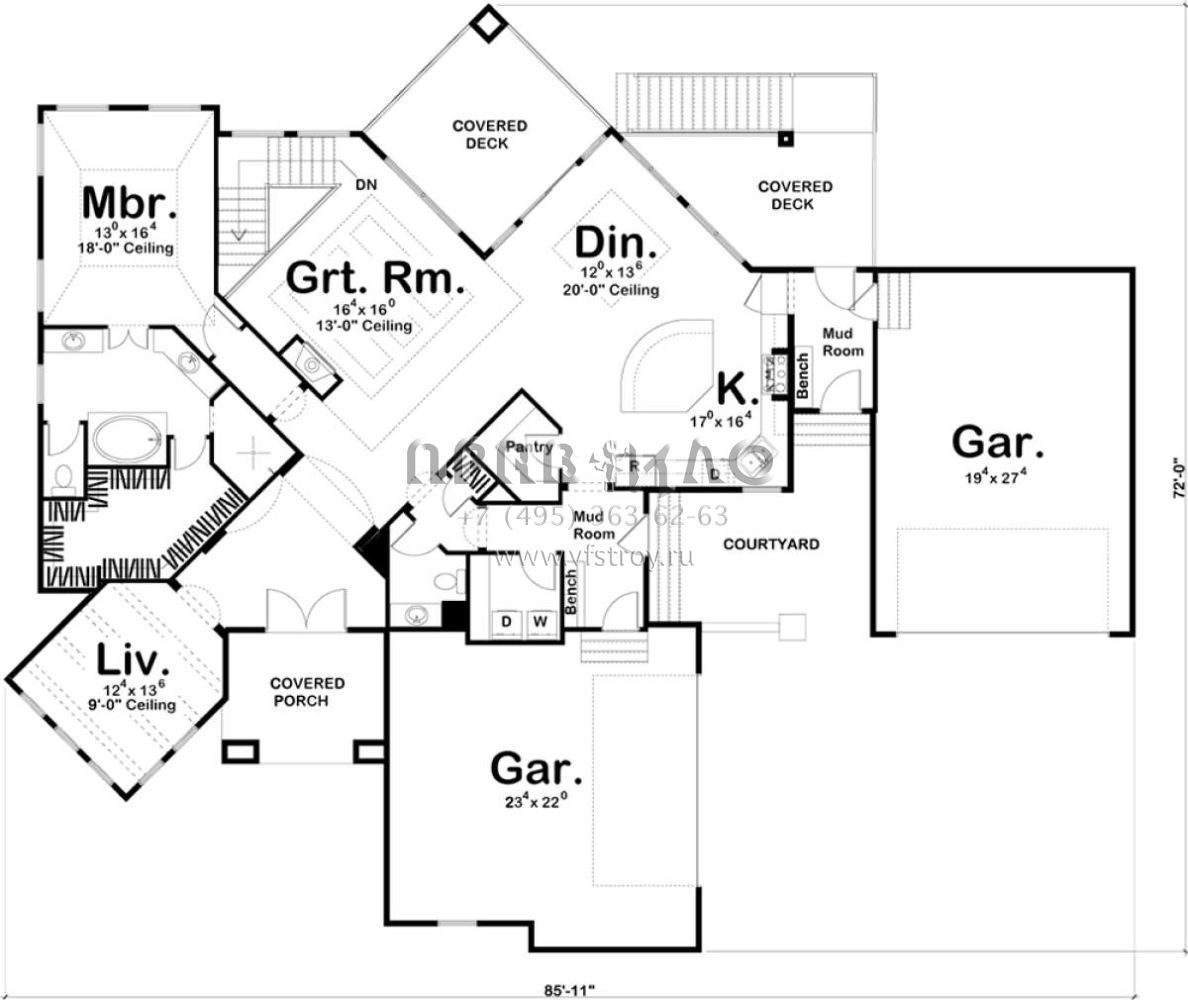 S5-198 (963-00287) Это иностранный проект, для которого требуется адаптация под нормы, действующие в Российской Федерации. Вы видите проект дома в английском стиле. В этом доме сочетаются черты сельской постройки и аскетичность лофта. Внутри жильцы смогут проводить время с максимальным комфортом. Обратим внимание, что сейчас на планировках все размеры представлены в футах. Для перевода в метры вам необходимо значение в футах умножить на 0,3048.