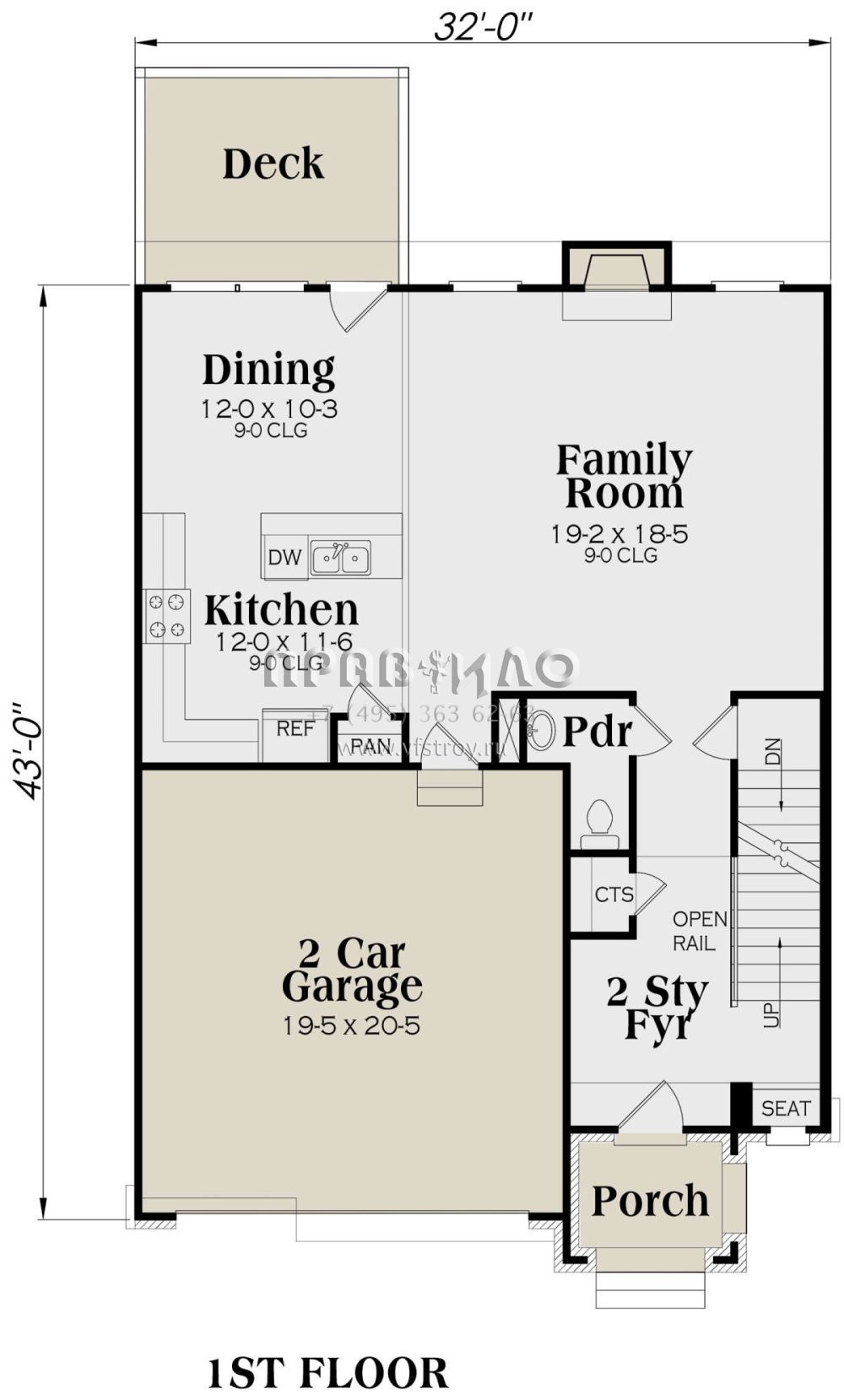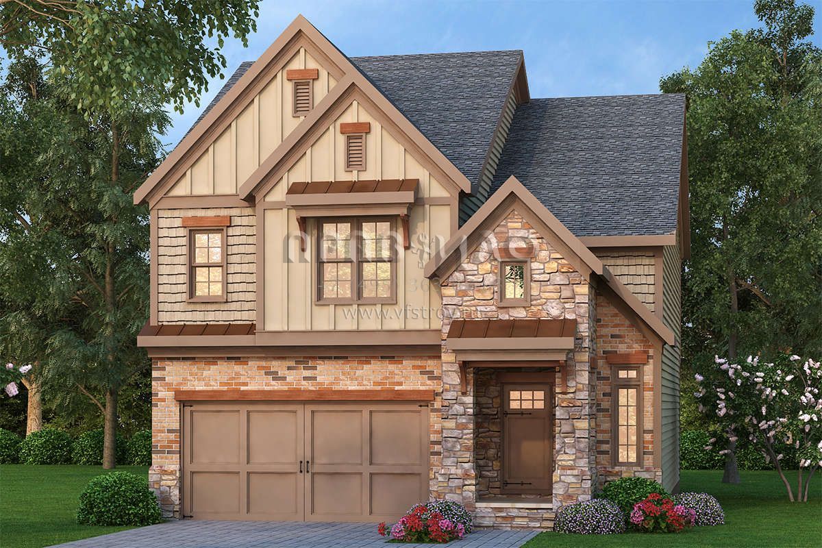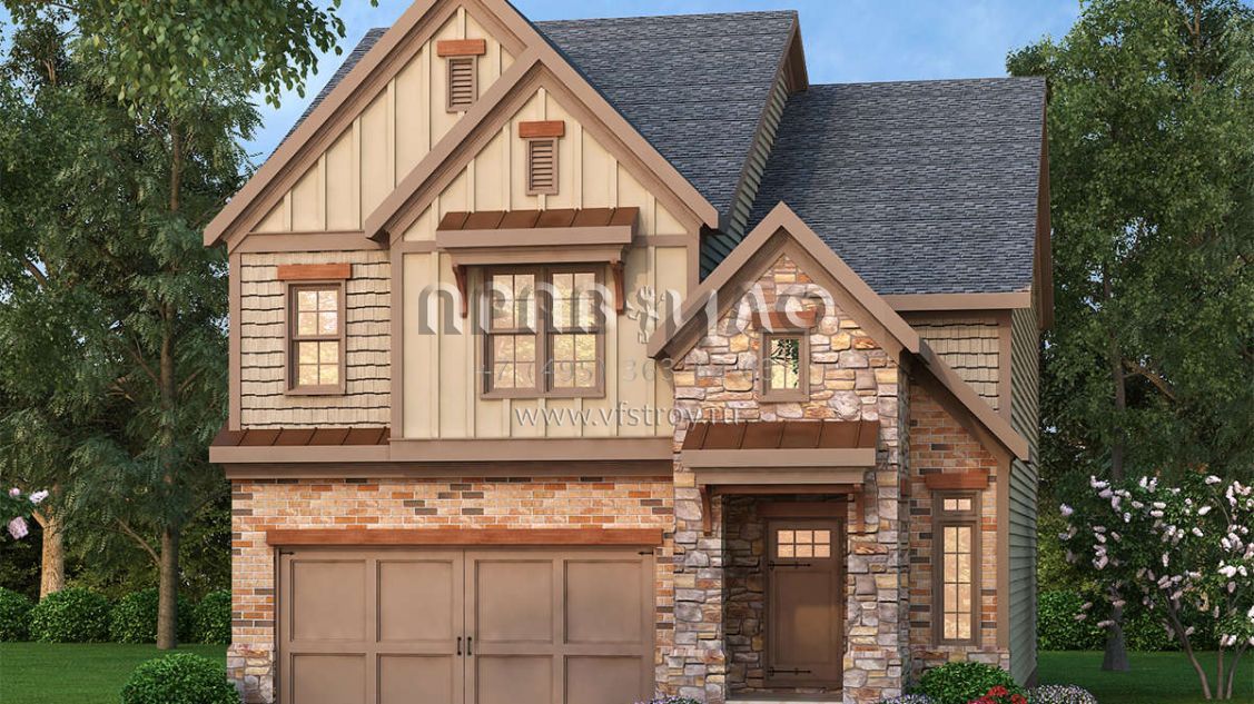 Проект двухэтажного дома с гаражом на две машины в стиле Ранчо S5-199 (009-00220)