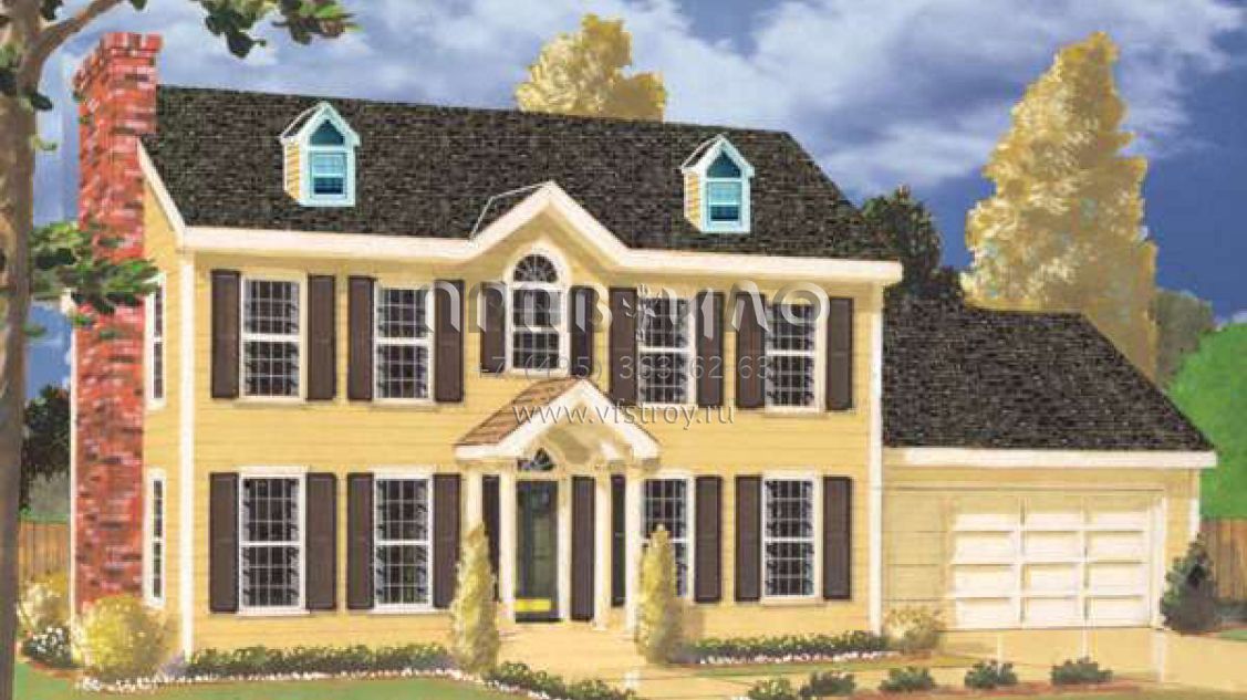 Проект двухэтажного дома с гаражом на две машины в стиле Особняк S5-199 (033-00076)