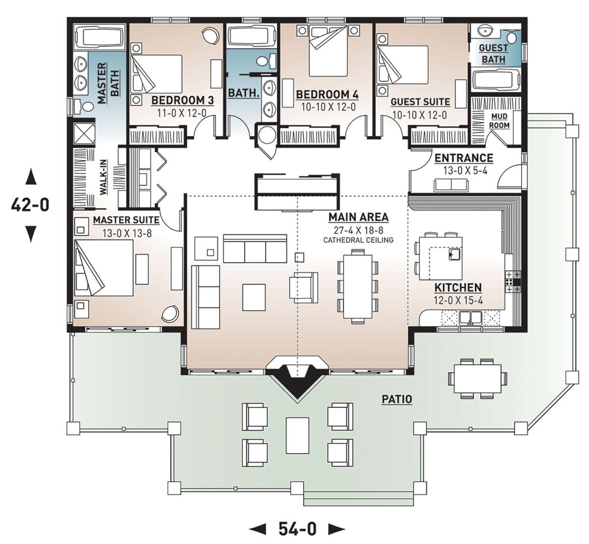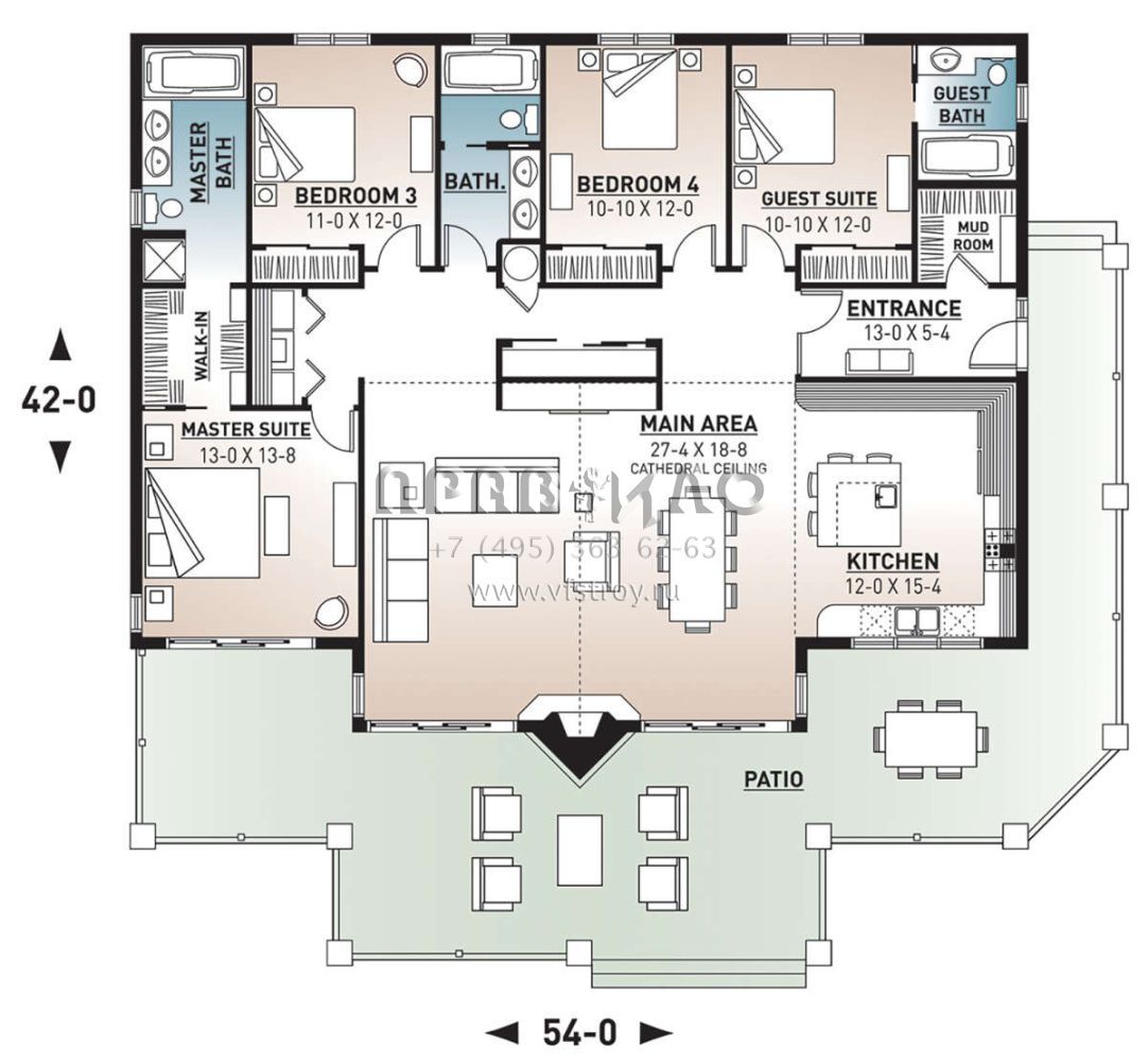 Проект одноэтажного дома без гаража в стиле Ранчо S5-199 (034-00882)