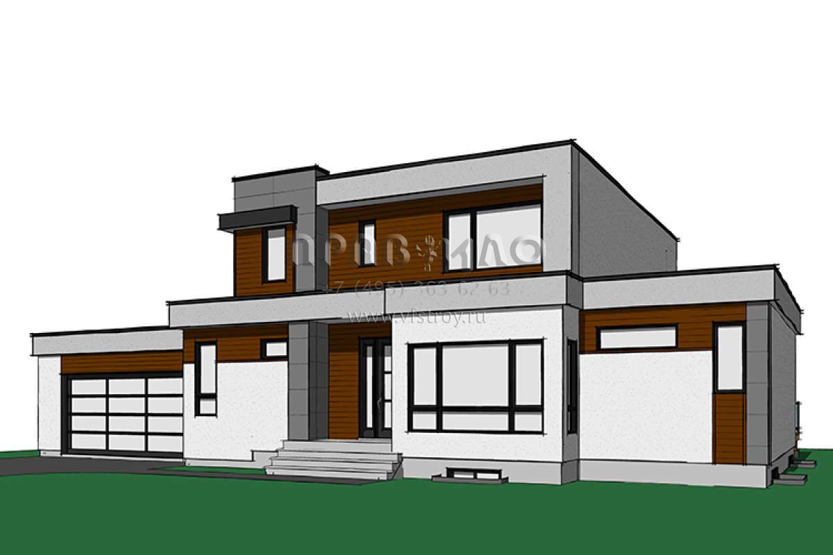 Проект двухэтажного дома с гаражом на две машины в стиле хай-тек S5-199 (034-01122)