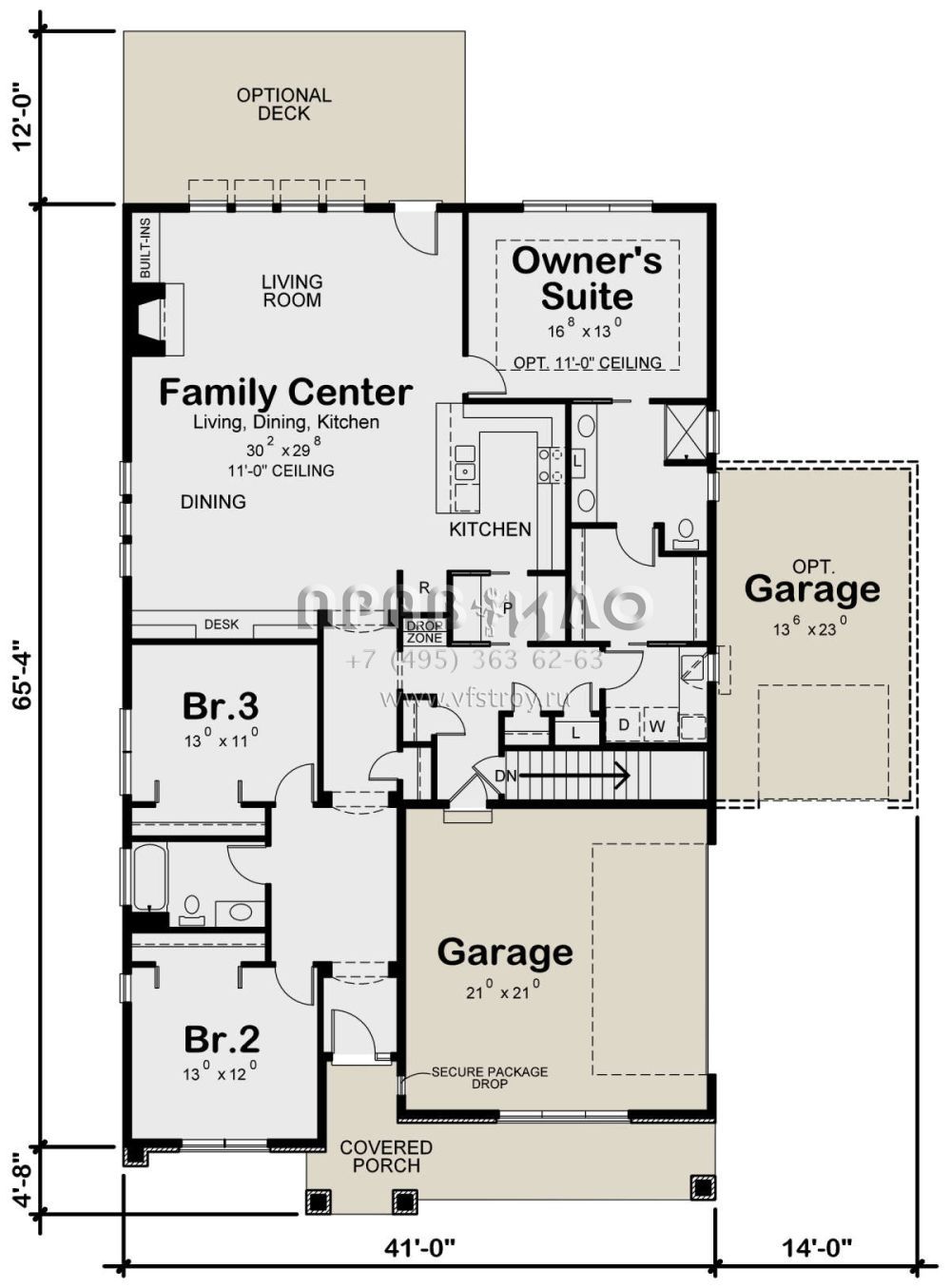 Проект одноэтажного дома с гаражом на две машины в американском стиле S5-199 (402-01683)