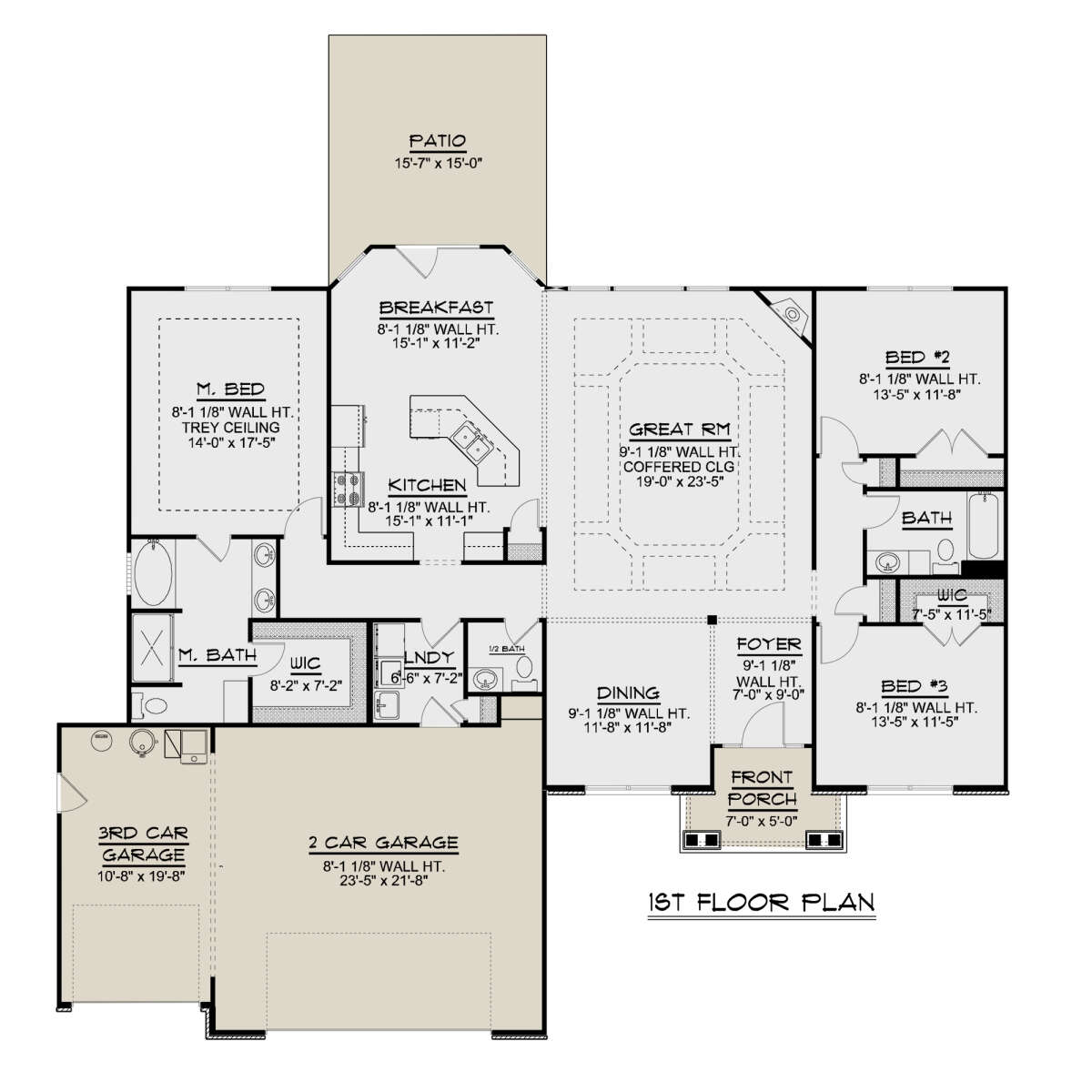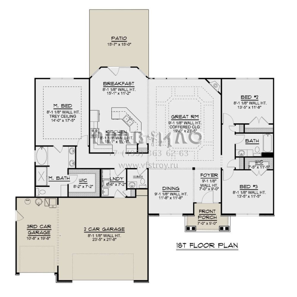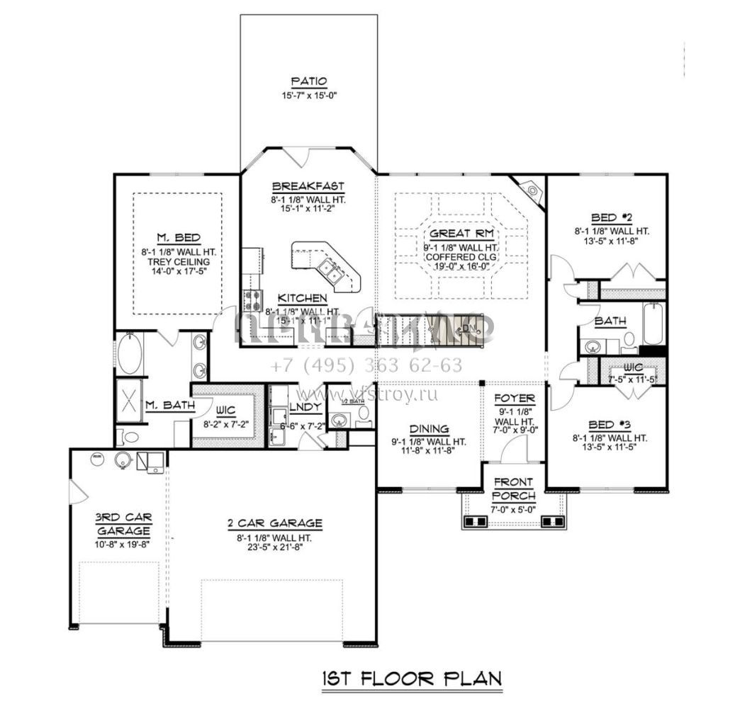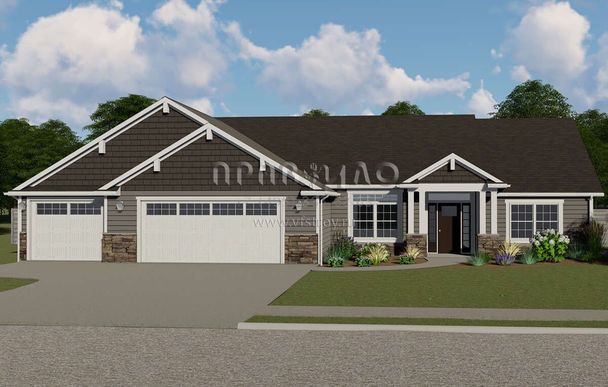 Проект одноэтажного дома с гаражом на три и более машин в стиле Ранчо S5-199 (5032-00030)