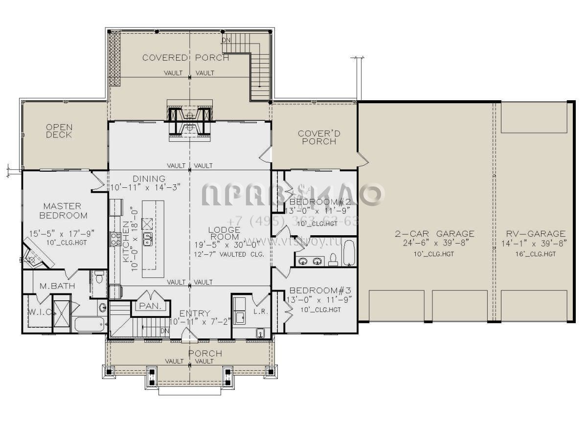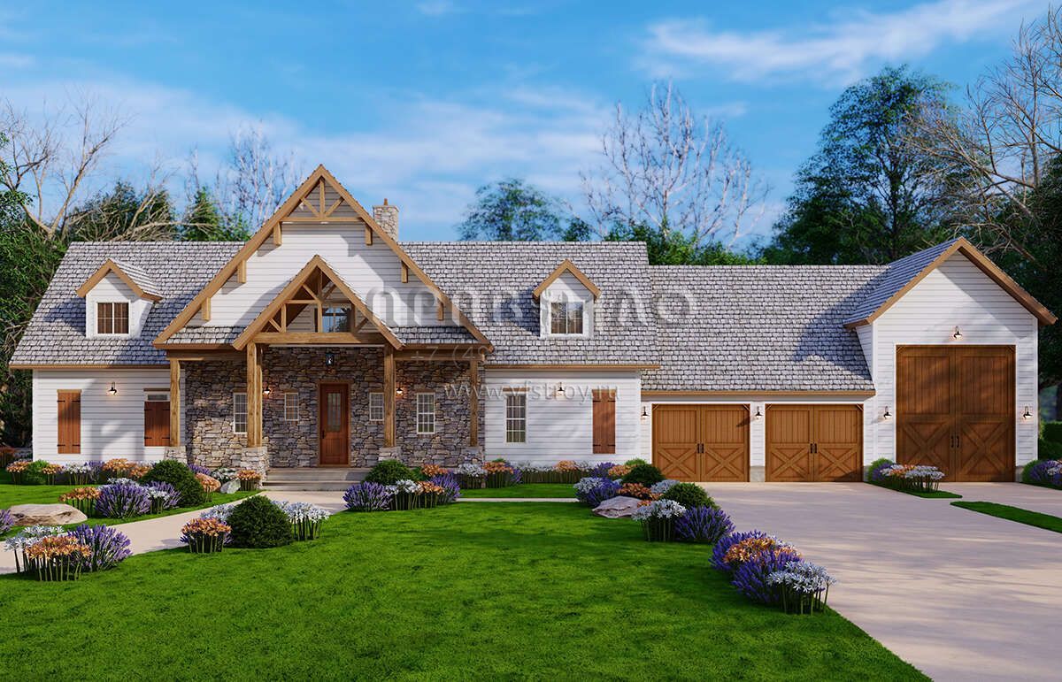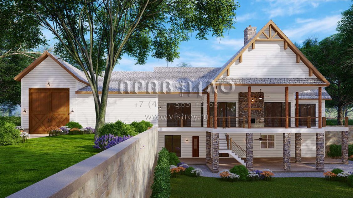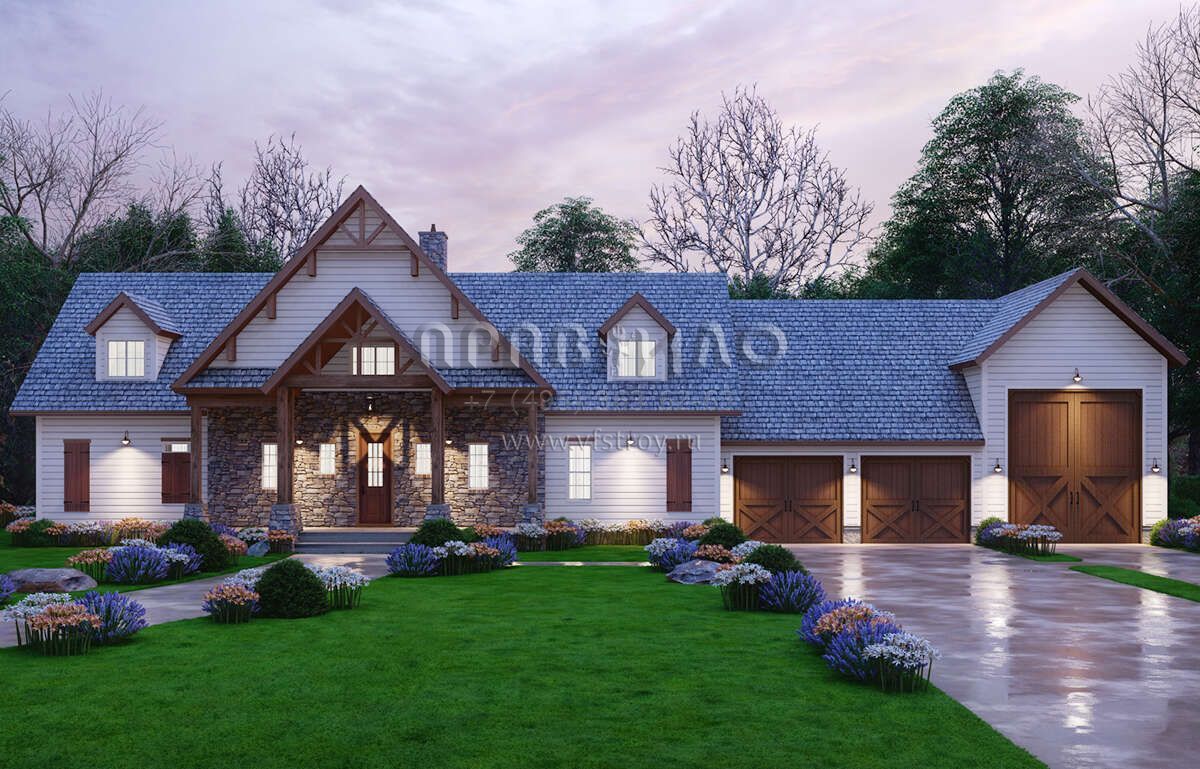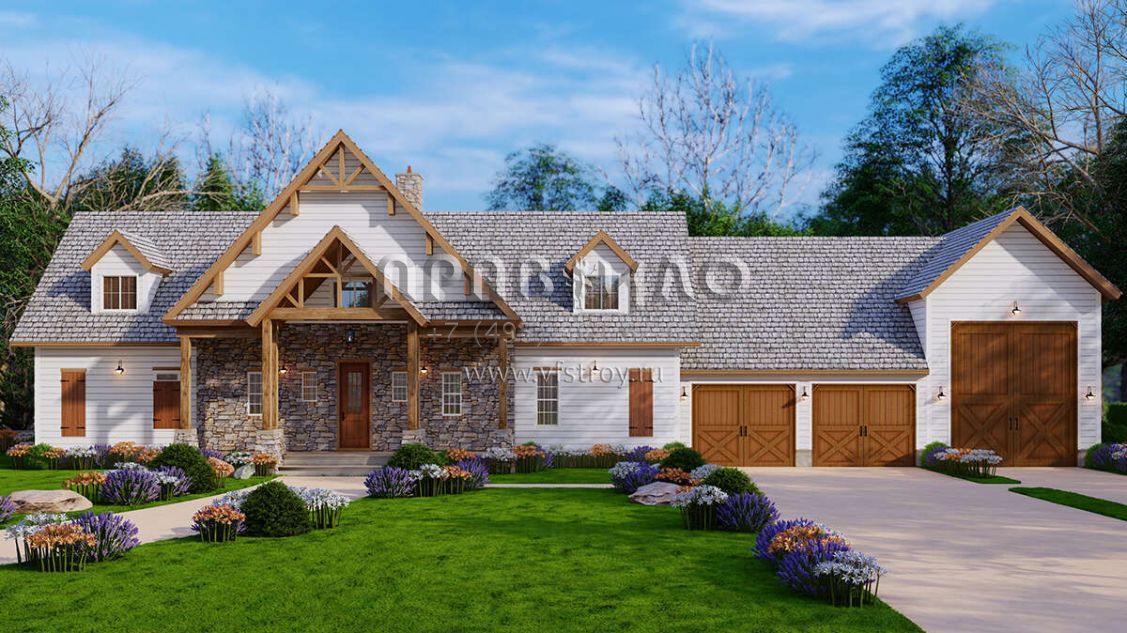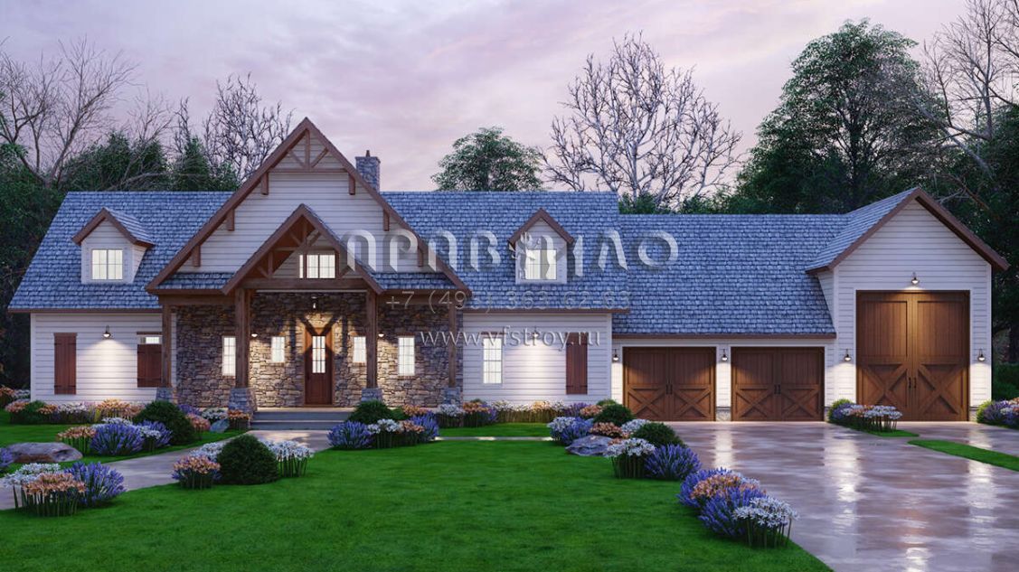 Проект одноэтажного дома с гаражом на две машины в стиле БарнХаус S5-199 (699-00298)