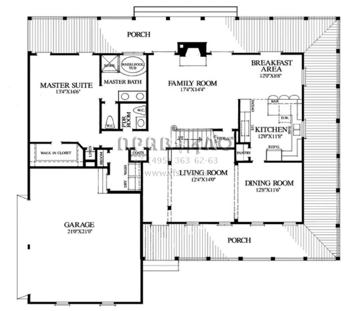 Проект двухэтажного дома с гаражом на две машины в стиле Ранчо S5-199 (7922-00024)