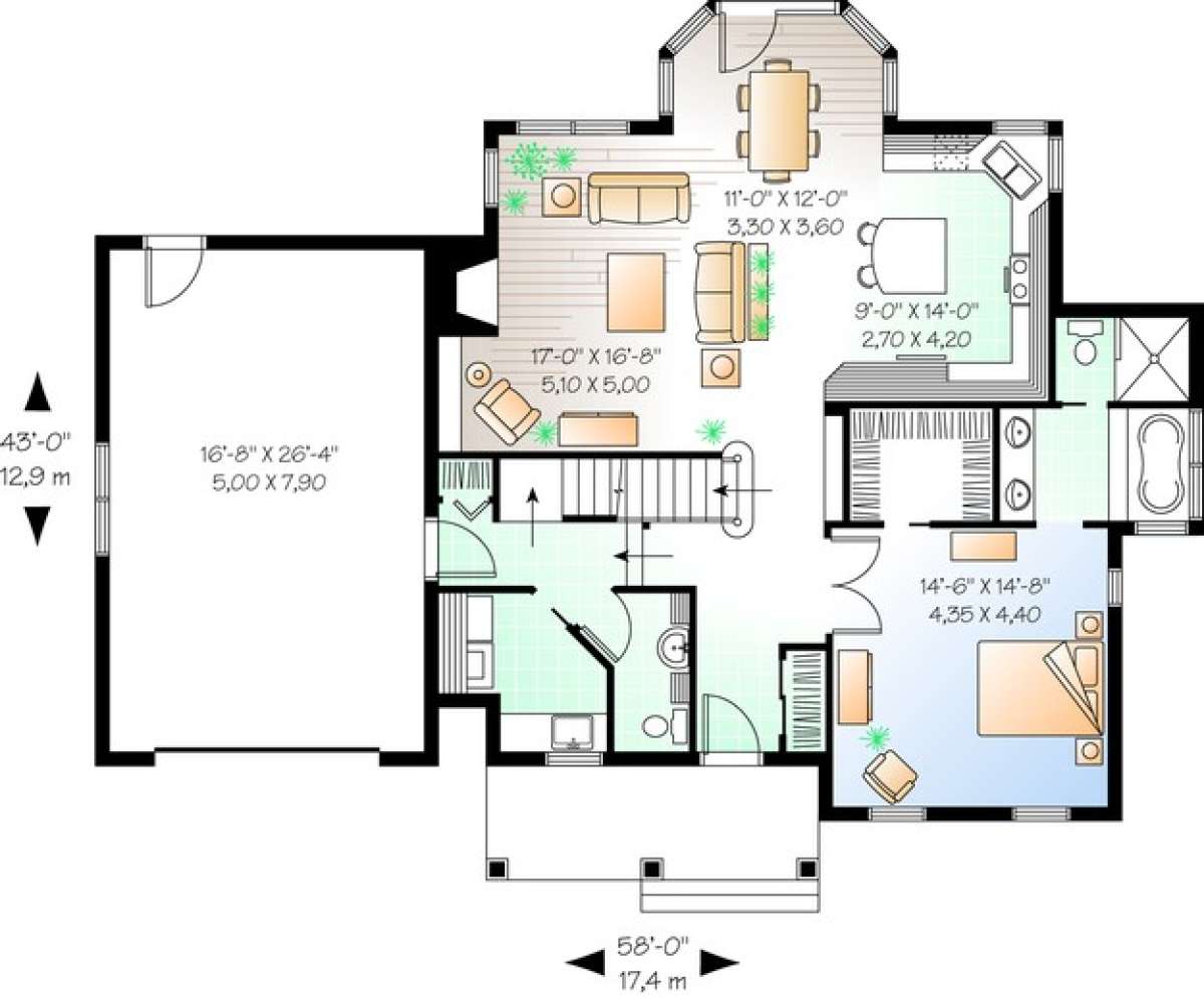 Проект двухэтажного дома с гаражом на одну машину в стиле Ранчо S5-200 (034-00408)