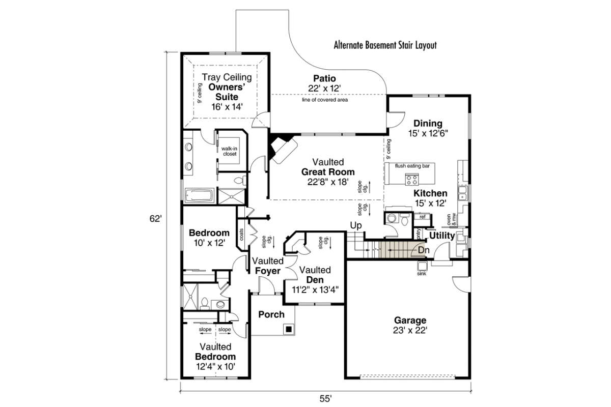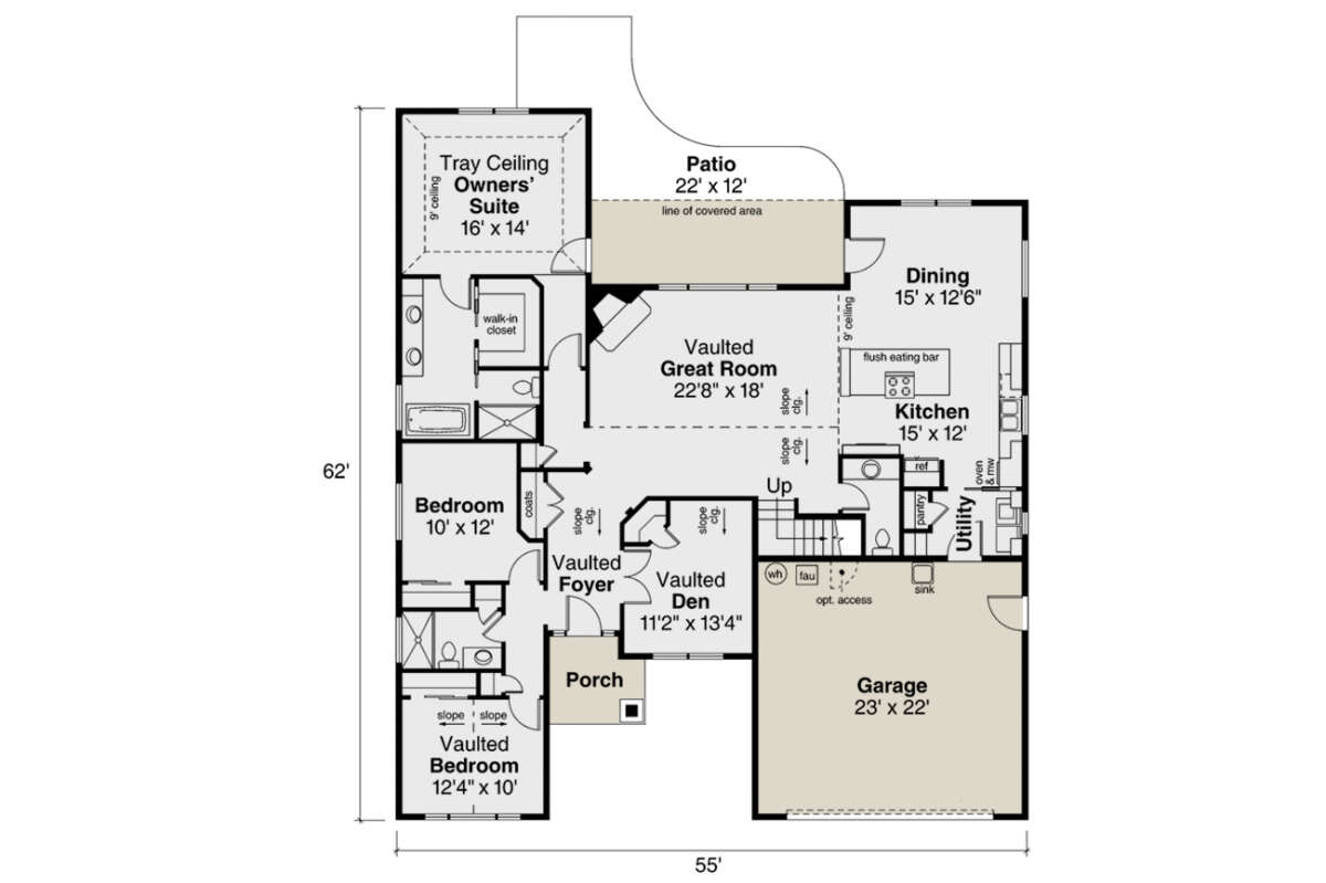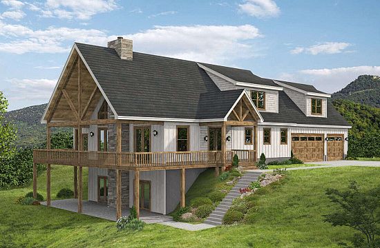 Проект двухэтажного дома с гаражом на две машины в стиле Ранчо S5-200 (035-00774)