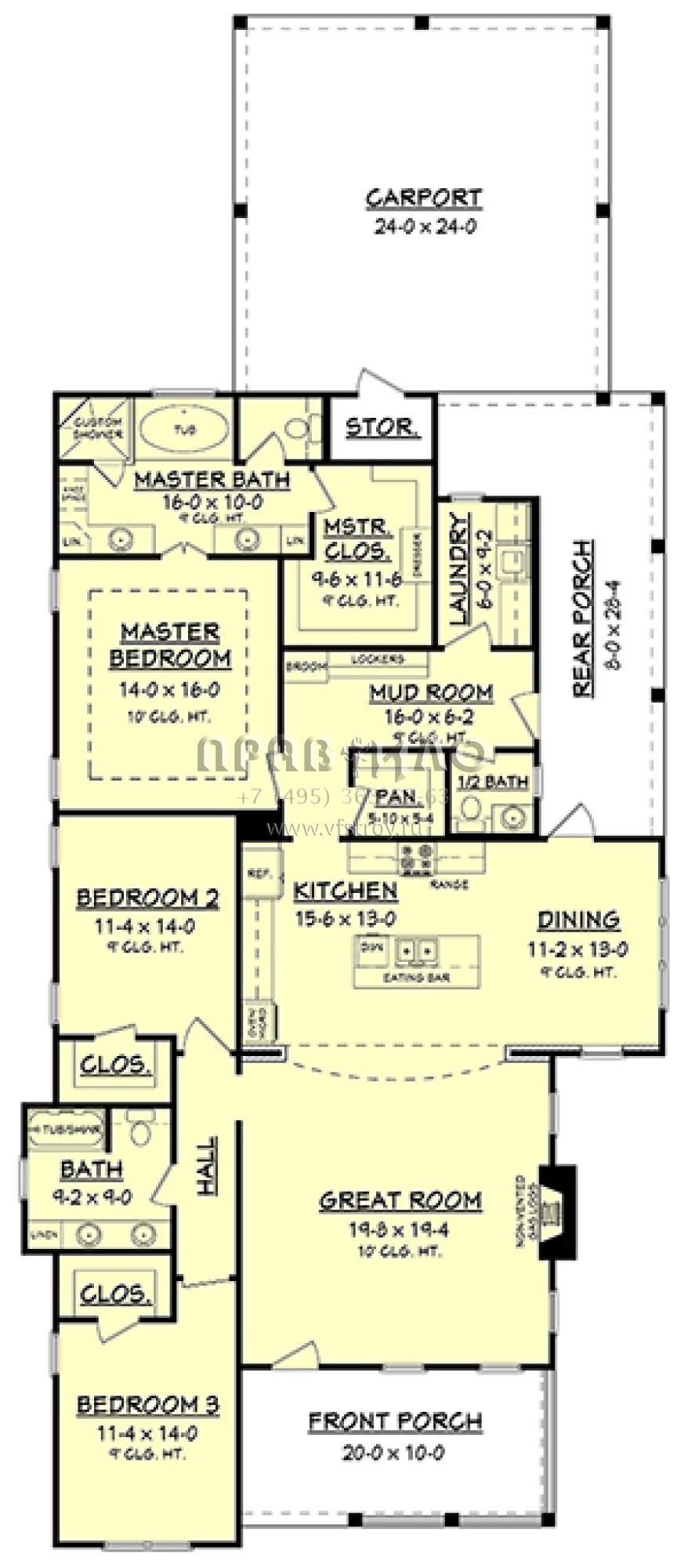 Проект одноэтажного дома с гаражом на две машины в стиле Ранчо S5-200 (041-00149)