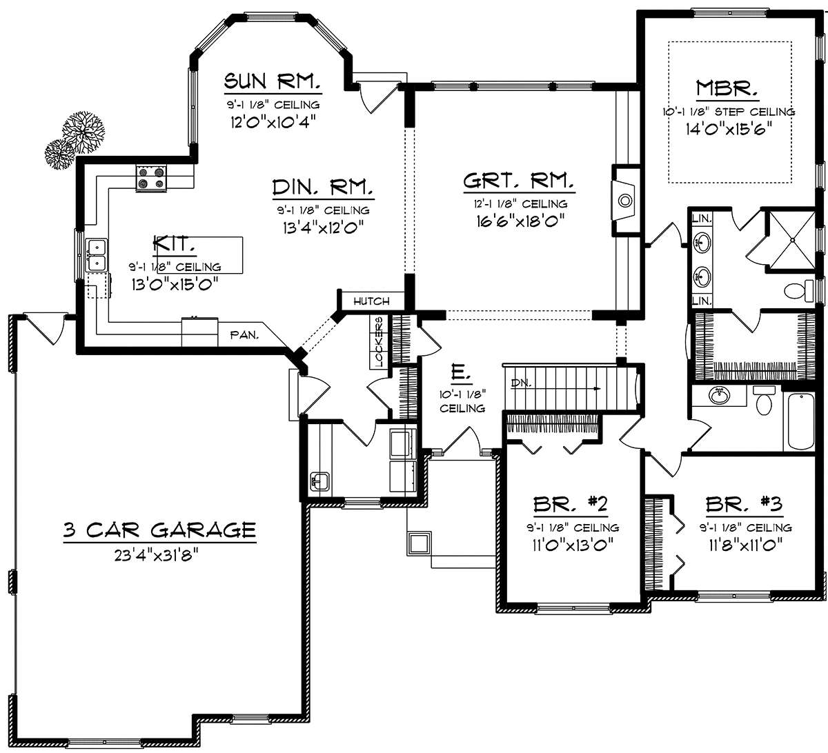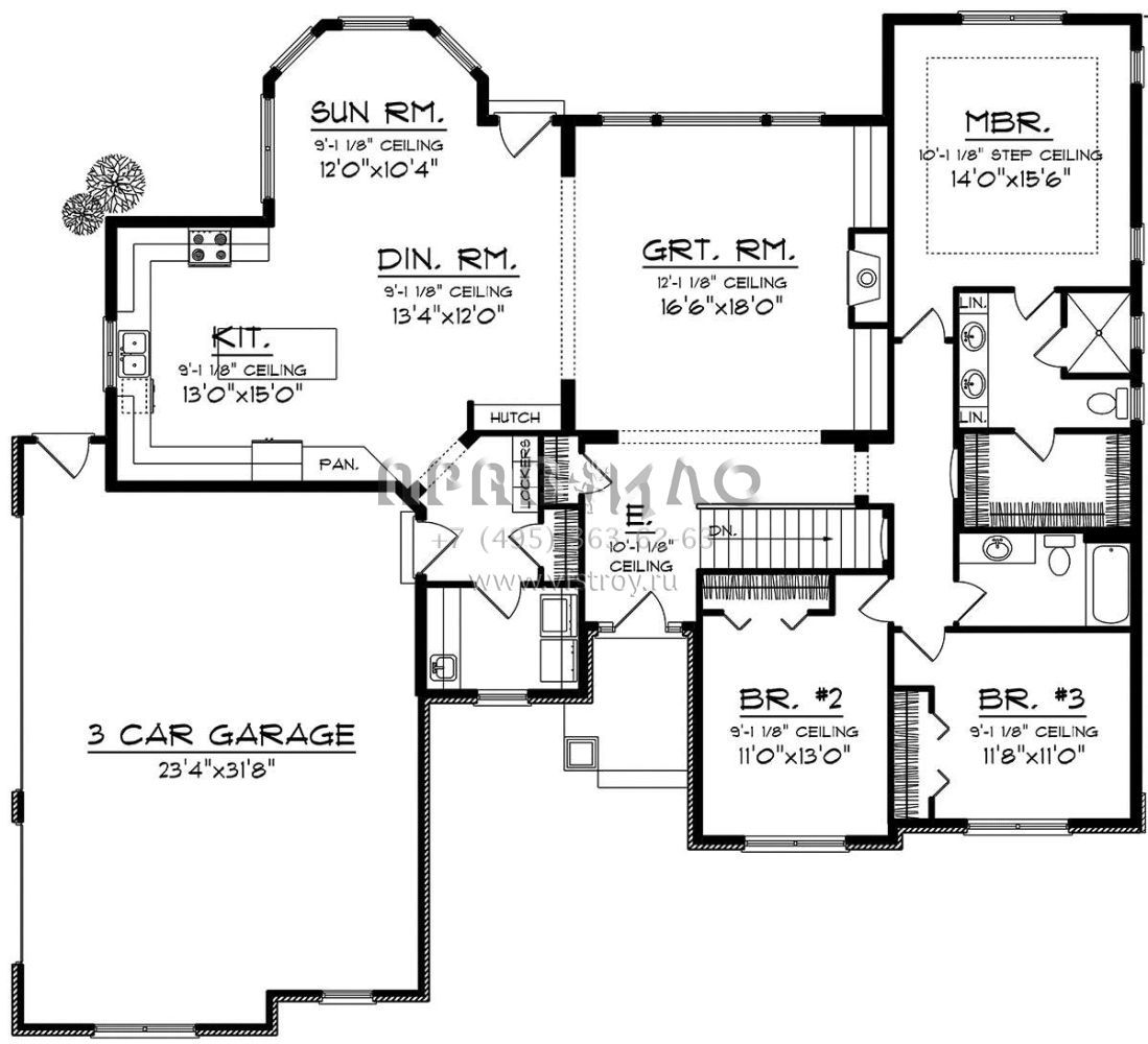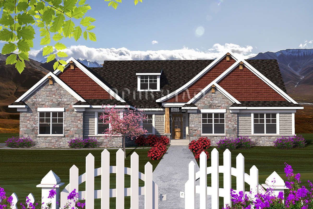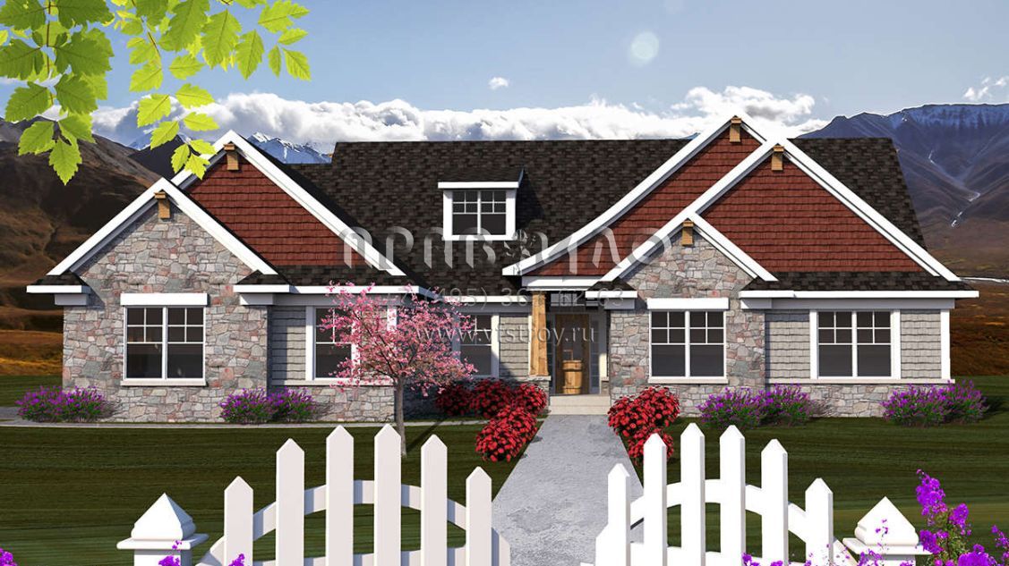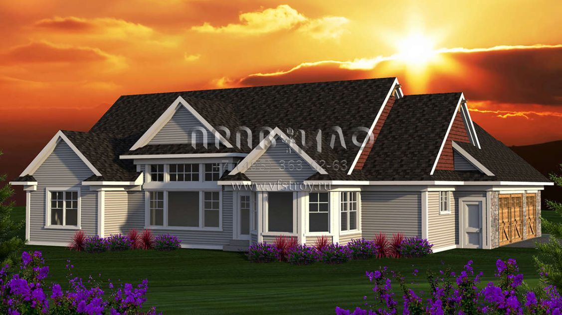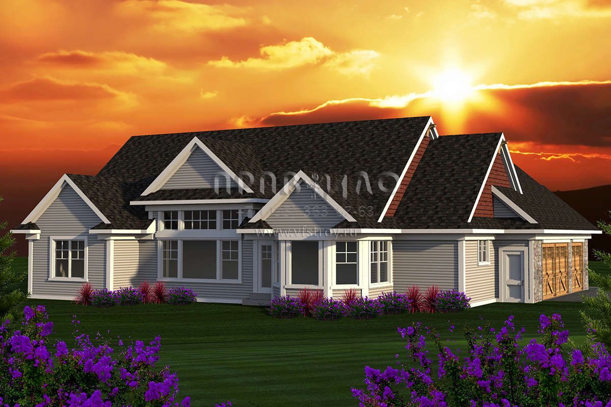 Проект одноэтажного дома с гаражом на три и более машин в стиле Ранчо S5-200 (1020-00144)