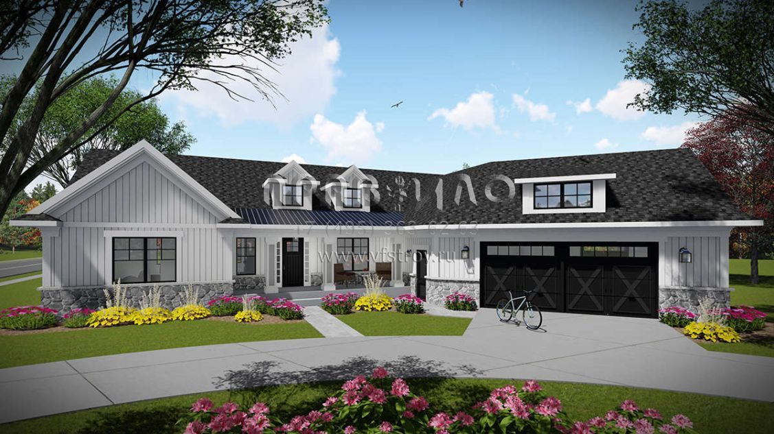 Проект одноэтажного дома с гаражом на две машины в современном стиле S5-200 (1020-00334)