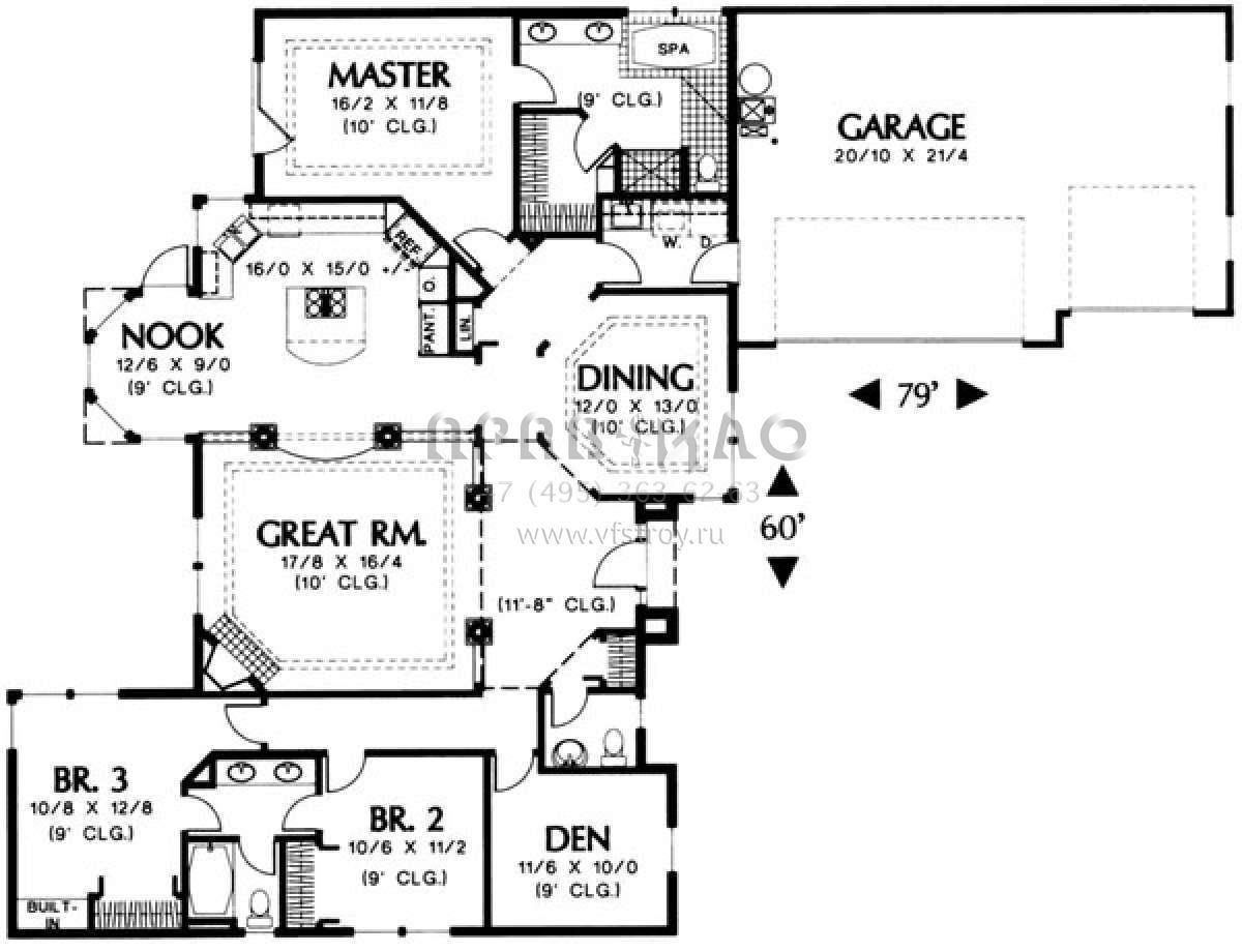 S5-200 (2559-00121) Это иностранный проект, для которого требуется адаптация под нормы, действующие в Российской Федерации. Вы видите проект дома в стиле Ранчо. В этом доме сочетаются черты сельской постройки и аскетичность лофта. Внутри жильцы смогут проводить время с максимальным комфортом. Обратим внимание, что сейчас на планировках все размеры представлены в футах. Для перевода в метры вам необходимо значение в футах умножить на 0,3048.