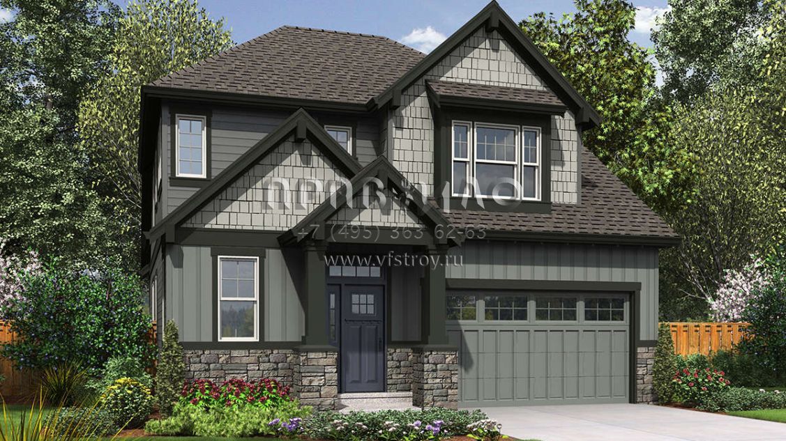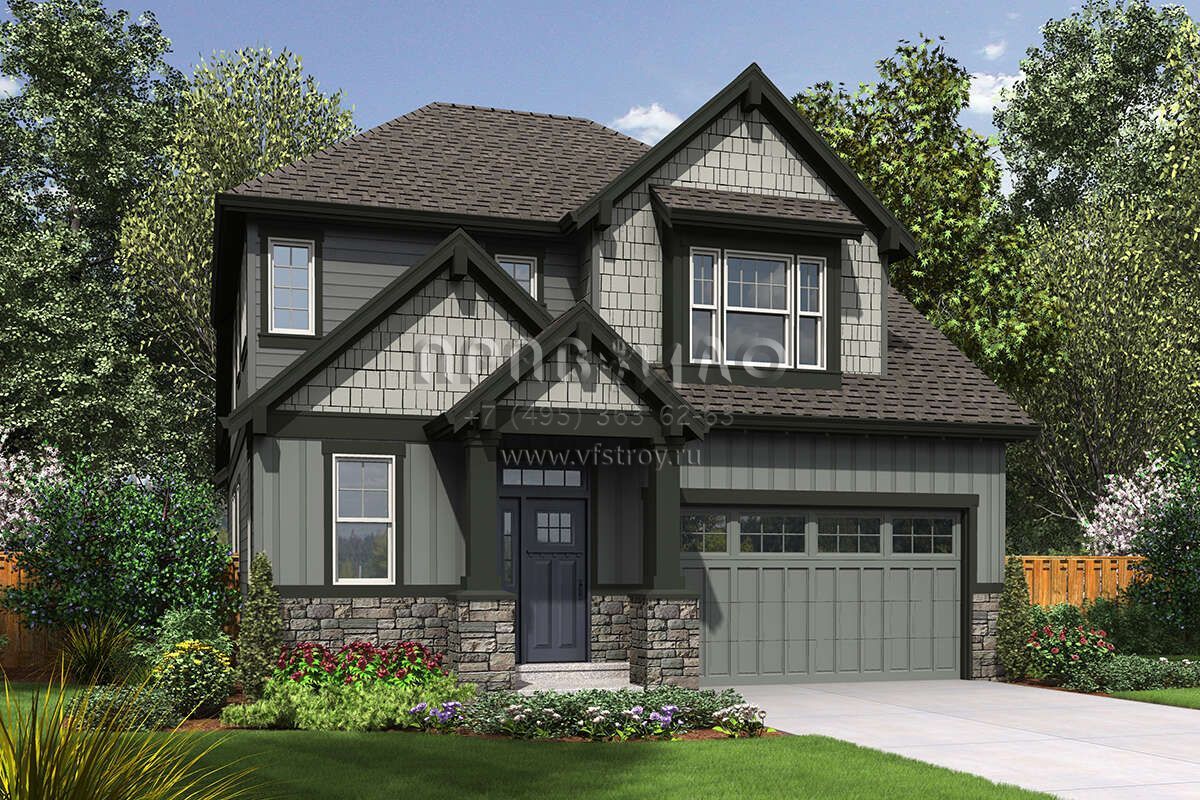 Проект двухэтажного дома с гаражом на две машины в американском стиле S5-200 (2559-00899)