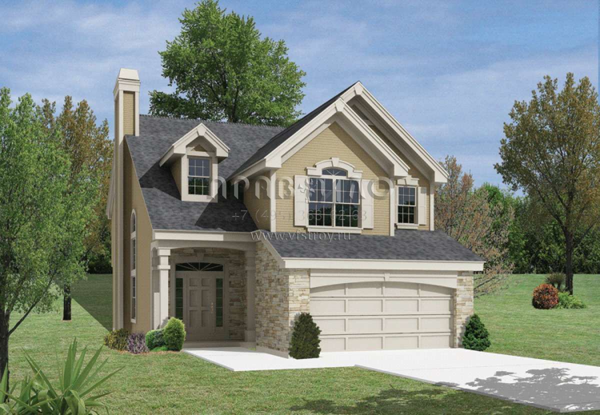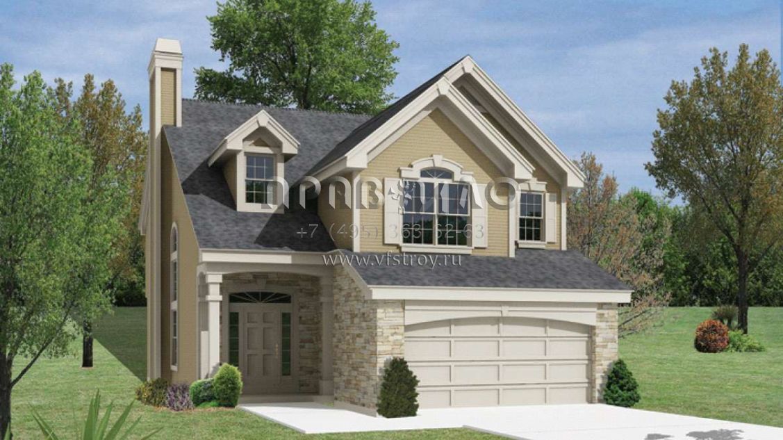 Проект двухэтажного дома с гаражом на две машины в стиле Ранчо S5-200 (5633-00137)