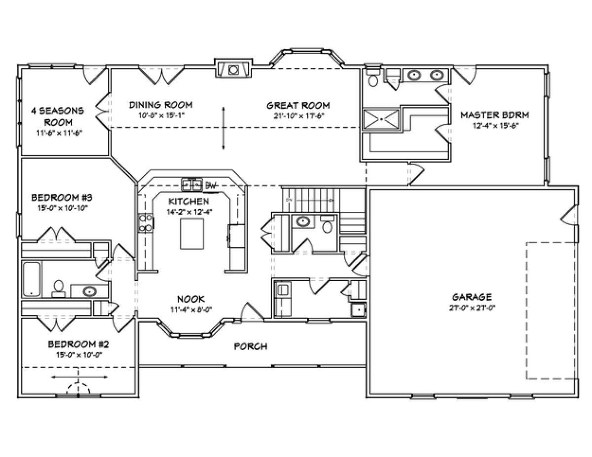Проект одноэтажного дома с гаражом на две машины в стиле Ранчо S5-200 (849-00064)