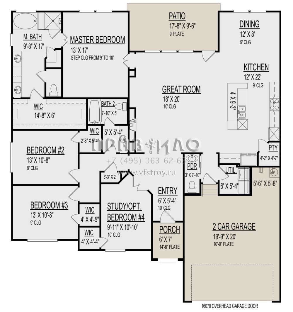 Проект одноэтажного дома с гаражом на две машины в стиле Ранчо S5-200 (9300-00091)