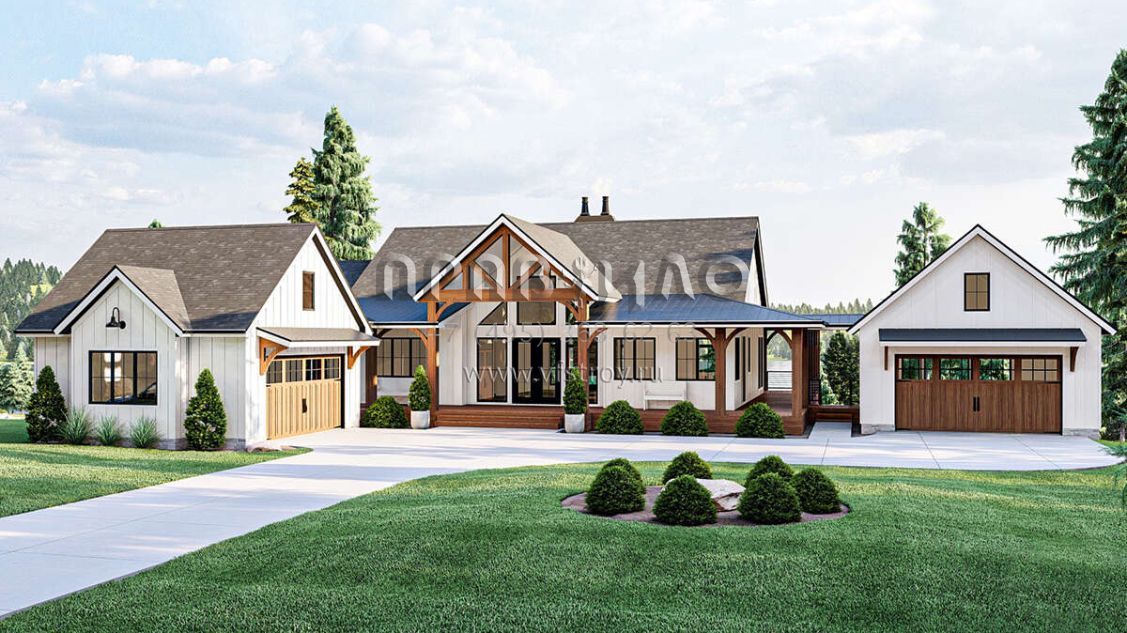 Проект одноэтажного дома с гаражом на три и более машин в современном стиле S5-200 (963-00549)