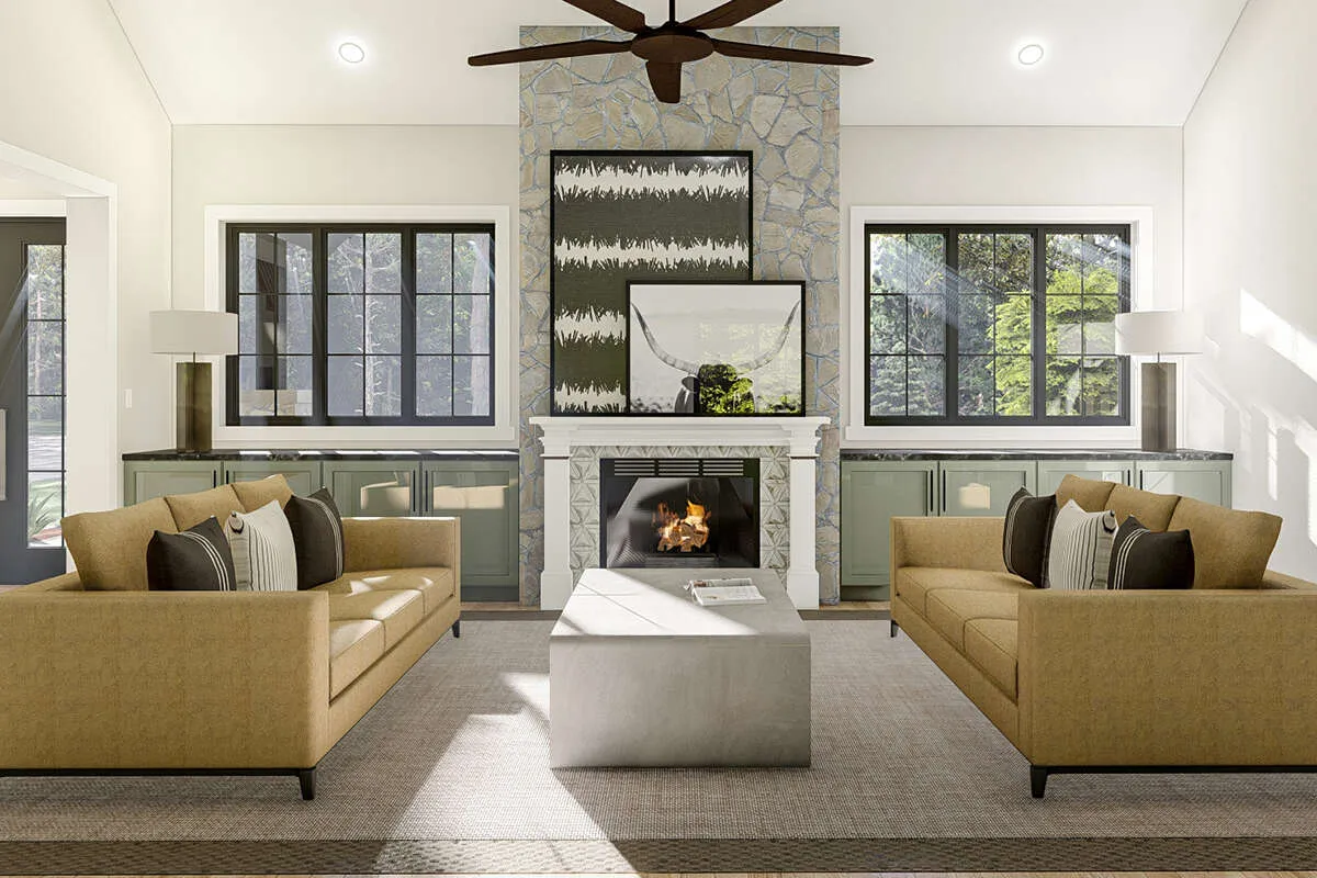 Поскольку этот проект разрабатывался иностранными архитекторами, для строительства дома требуется переработка проекта под действующие в России нормы. Данные визуализации проекта представлены для ознакомления с концепцией проекта. Проект разработан американским архитектурным бюро и представлен America's Best House Plans.