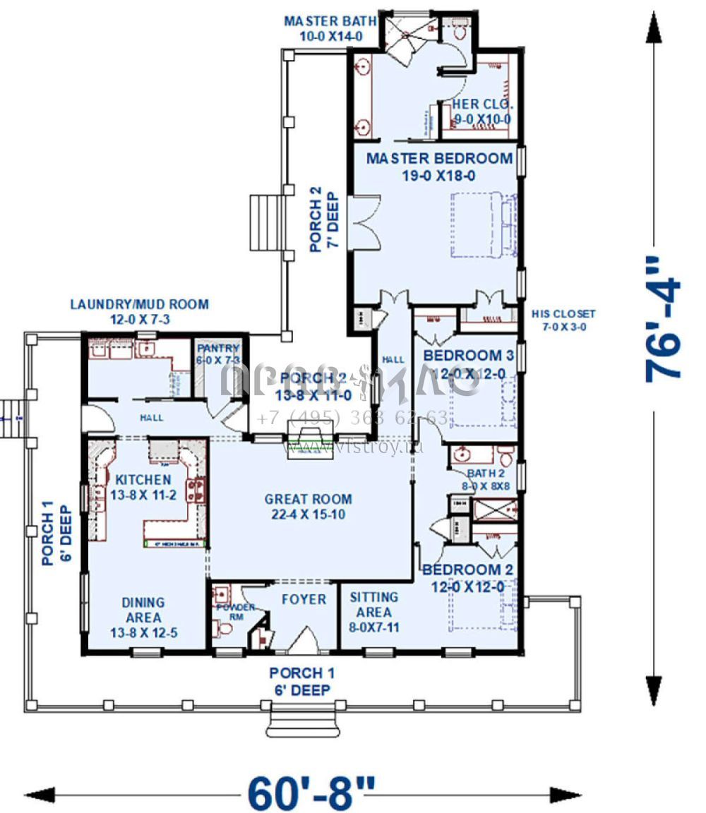 Проект одноэтажного дома без гаража в стиле Ранчо S5-201 (1776-00109)
