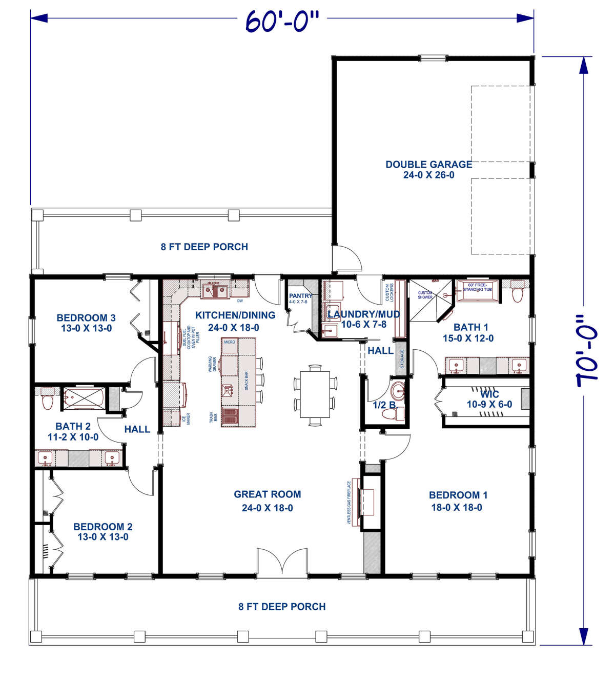 Проект одноэтажного дома с гаражом на две машины в современном стиле S5-201 (1776-00136)