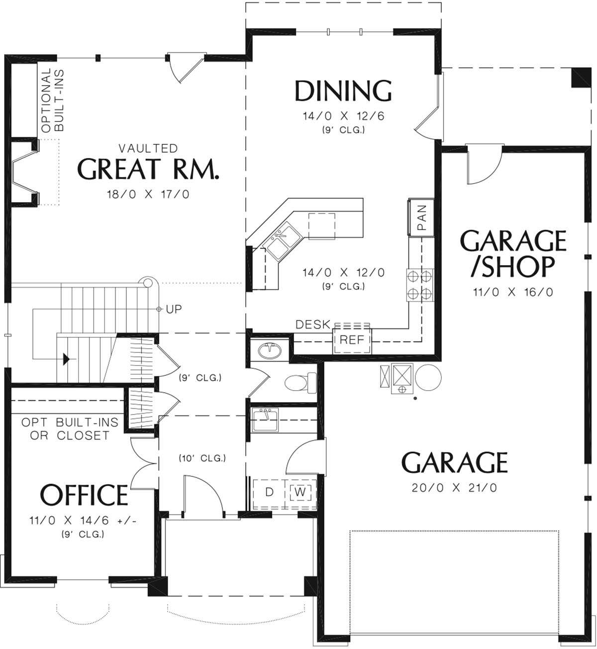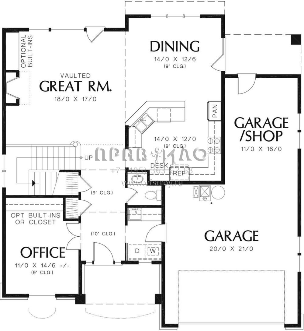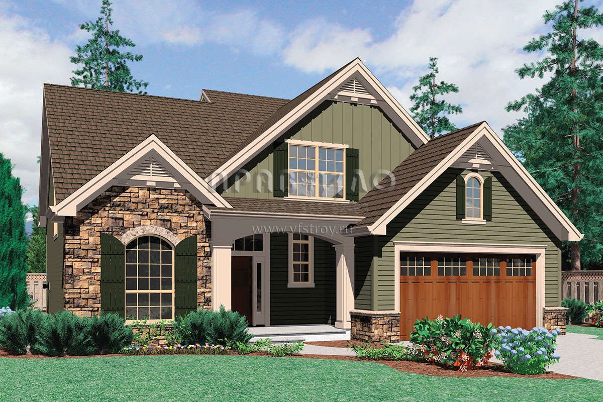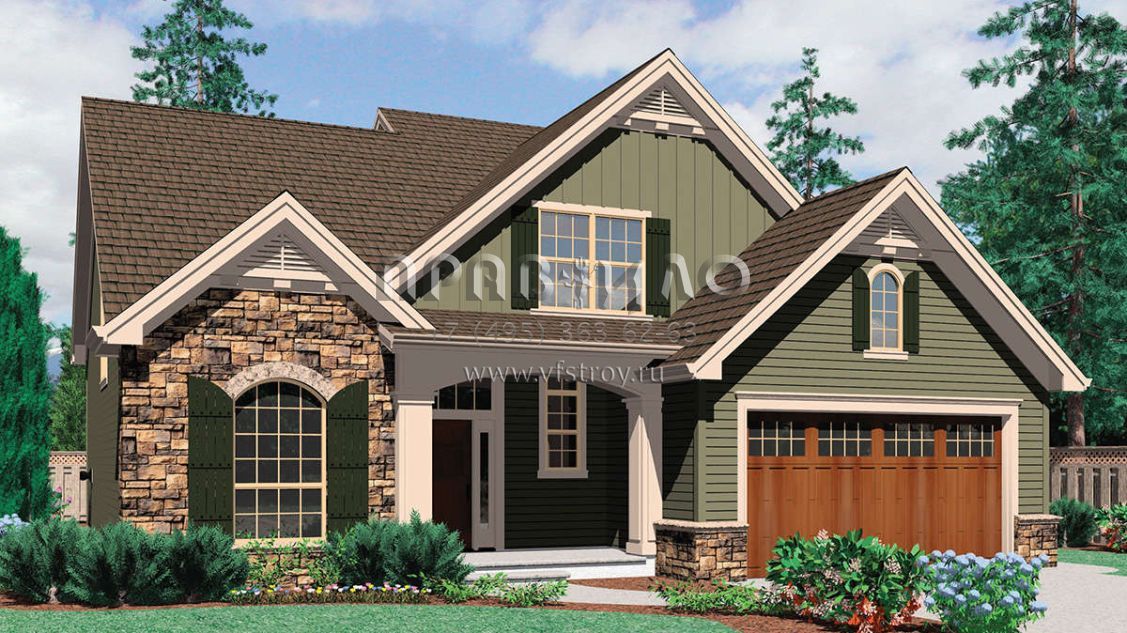 Проект двухэтажного дома с гаражом на три и более машин в стиле Ранчо S5-201 (2559-00362)