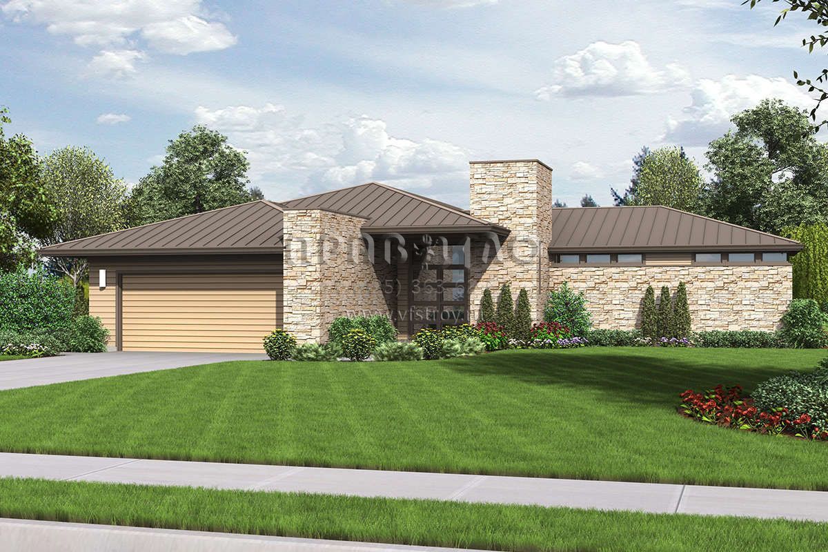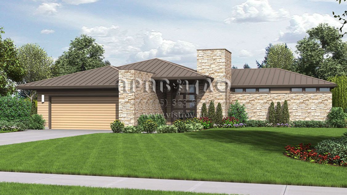 Проект одноэтажного дома с гаражом на две машины в современном стиле S5-201 (2559-00701)