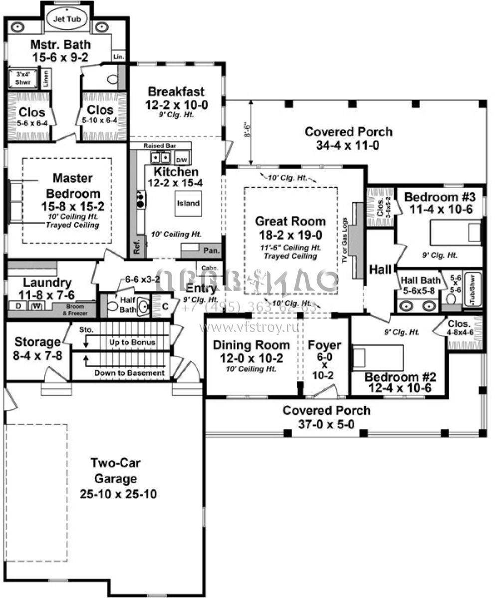 Проект одноэтажного дома с гаражом на две машины в стиле Ранчо S5-201 (348-00246)