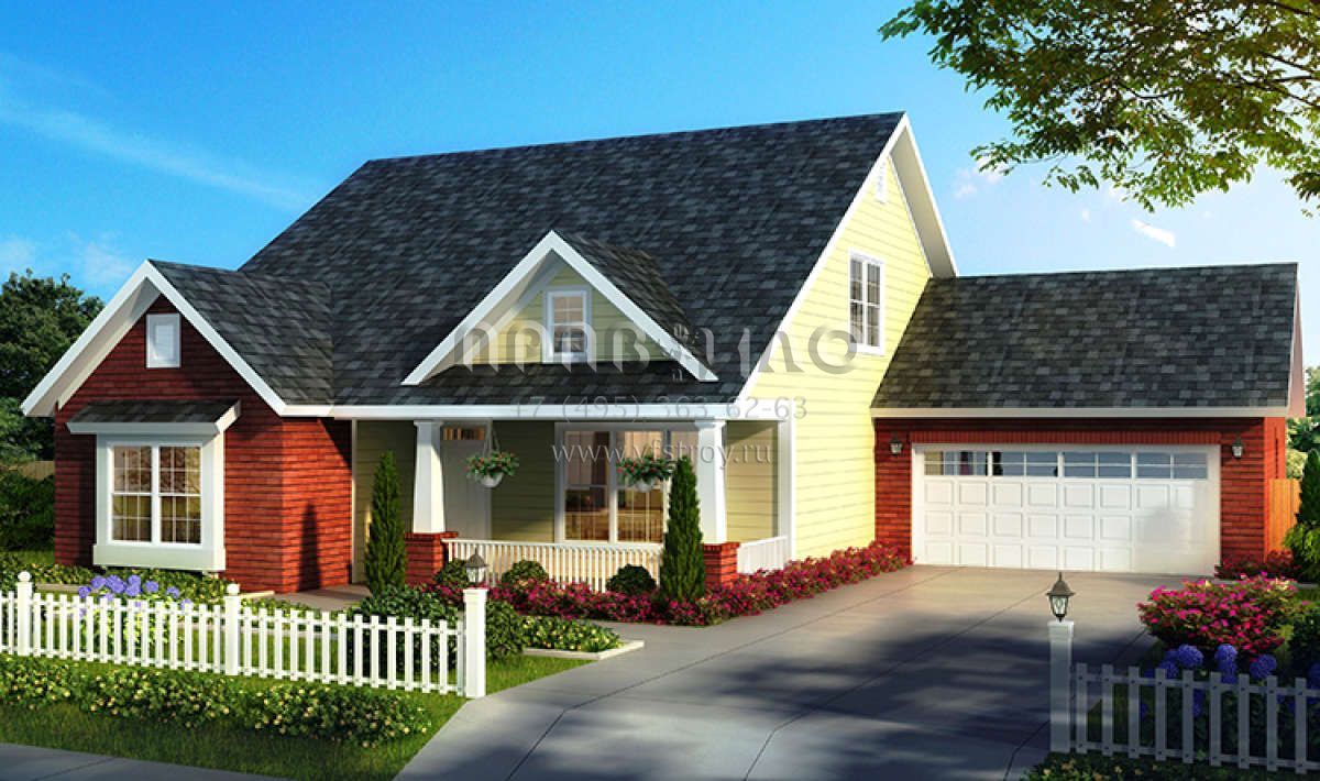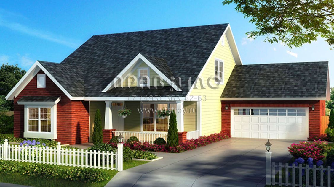 Проект двухэтажного дома с гаражом на две машины в американском стиле S5-201 (4848-00347)