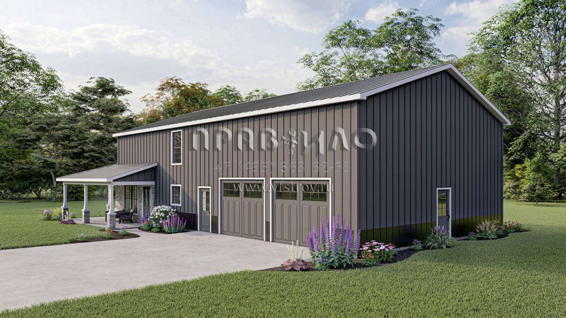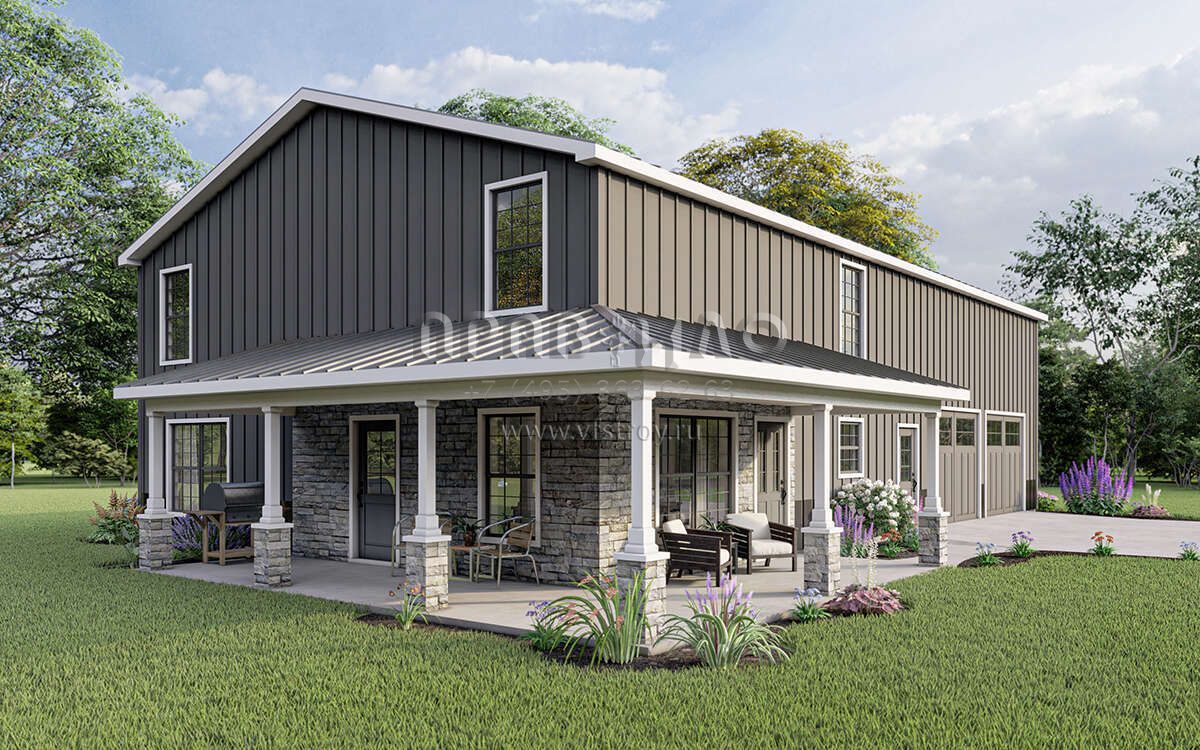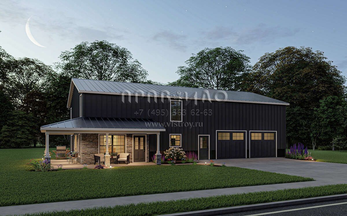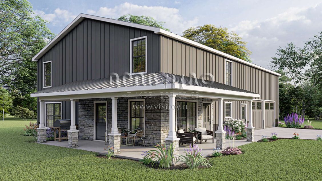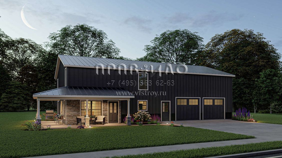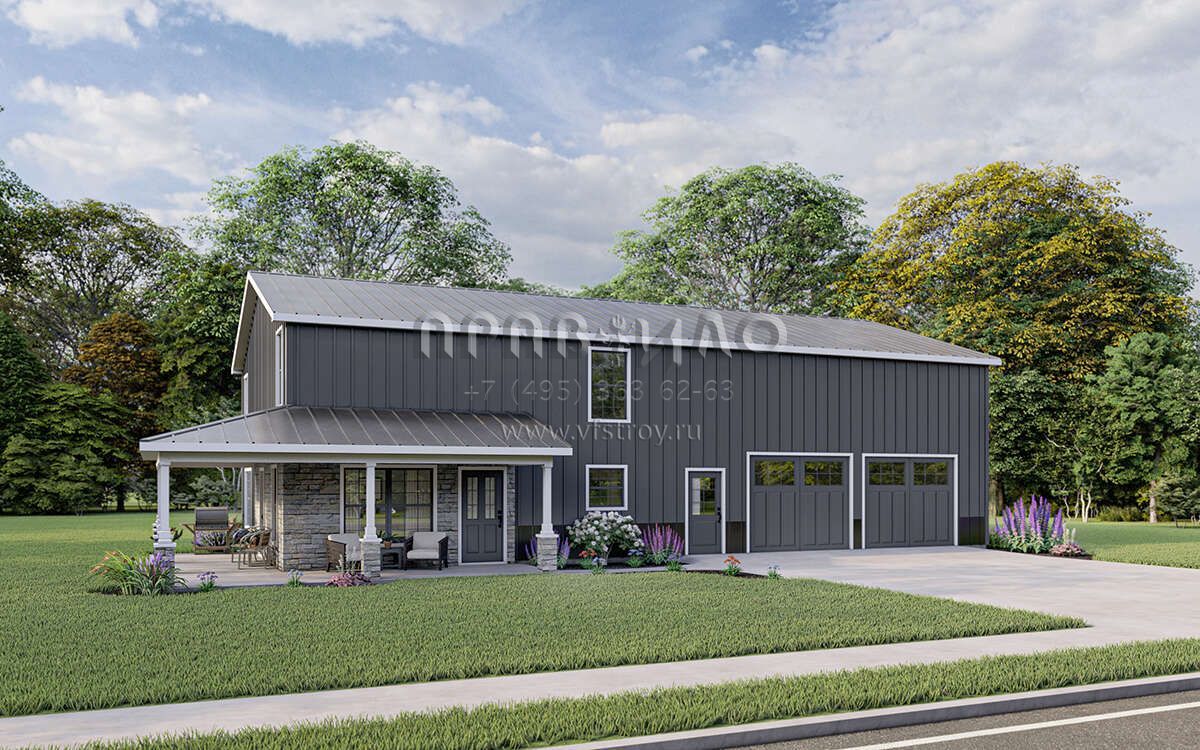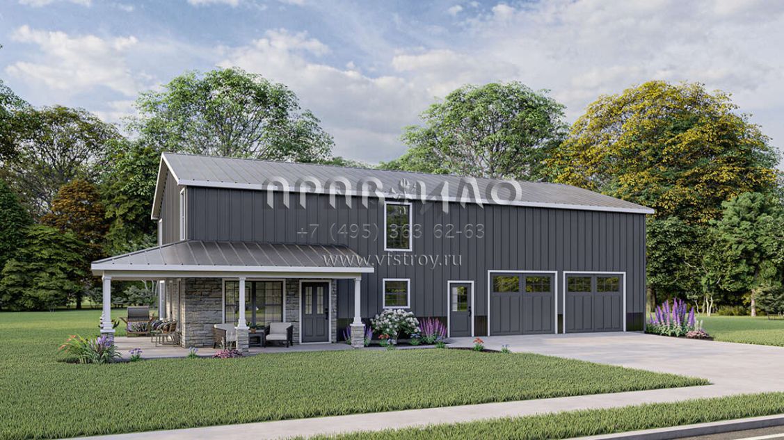 Проект двухэтажного дома с гаражом на три и более машин в стиле БарнХаус S5-201 (5032-00010)
