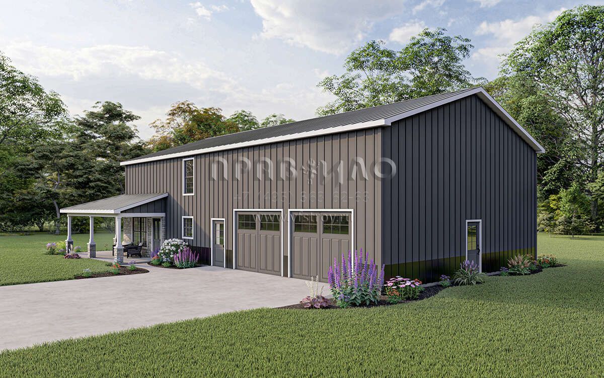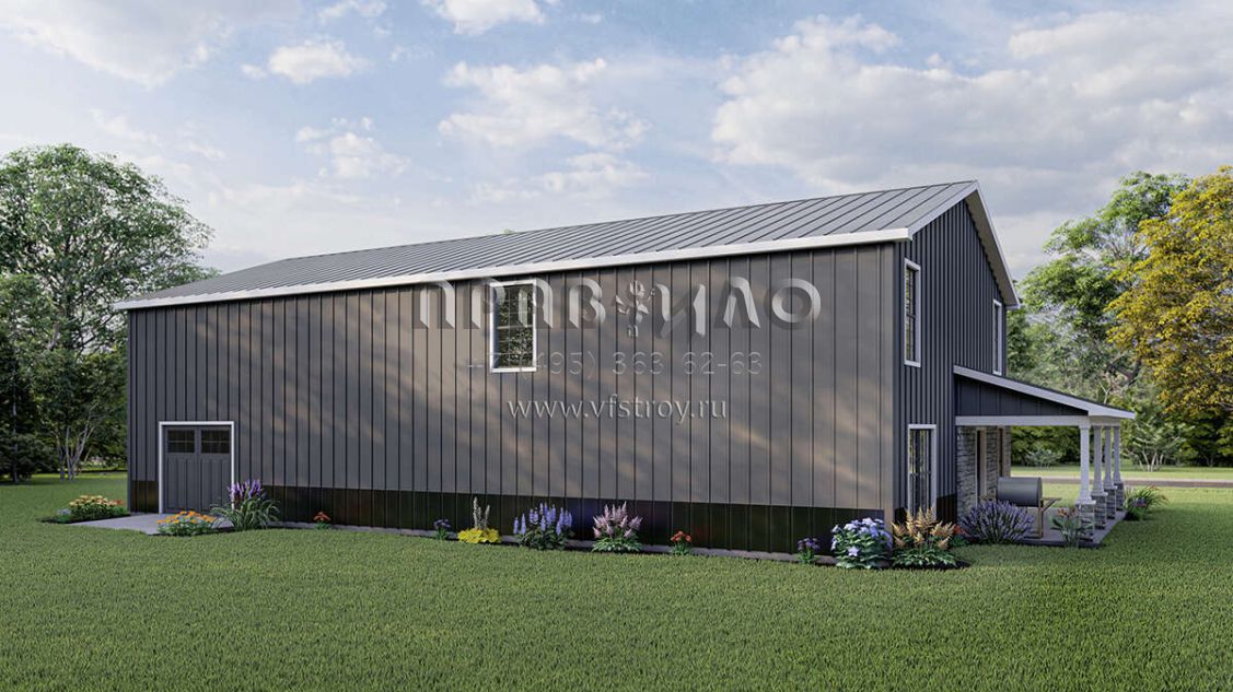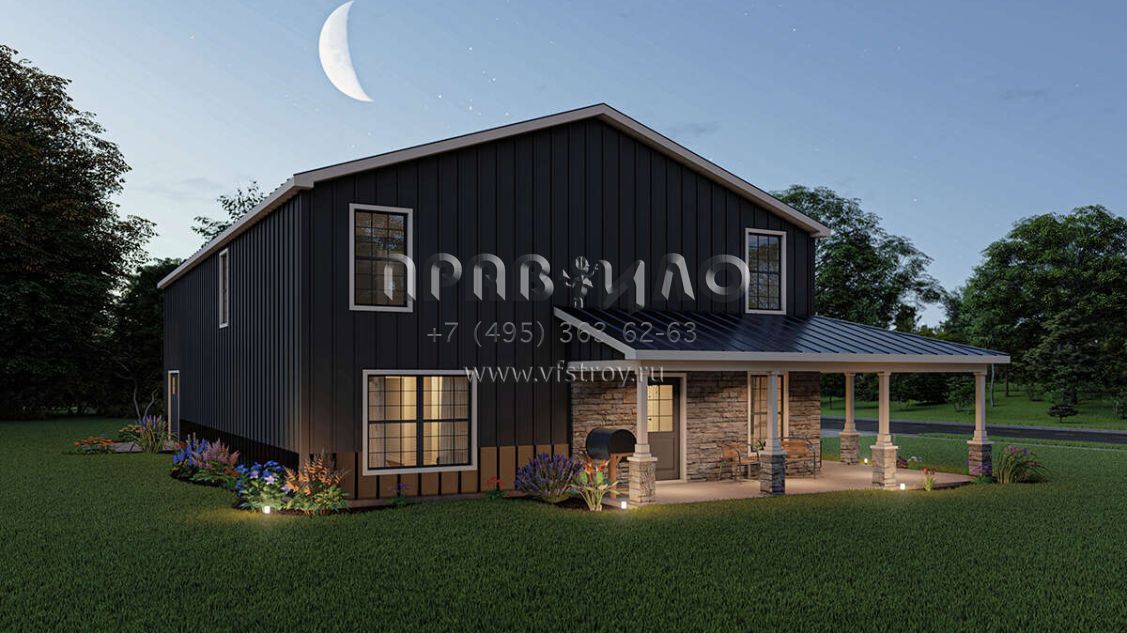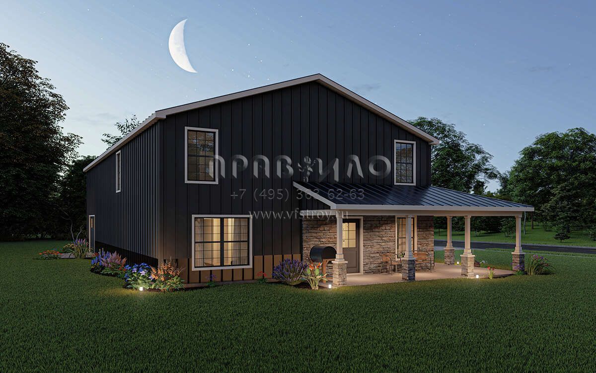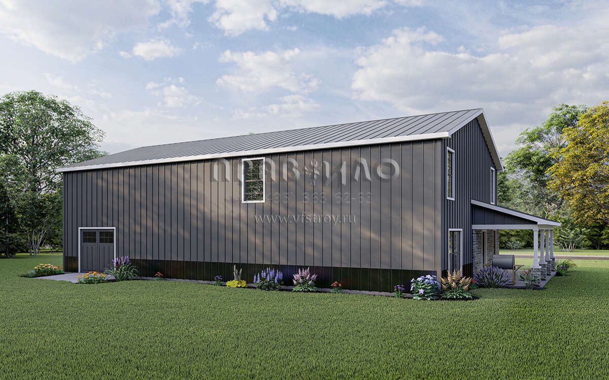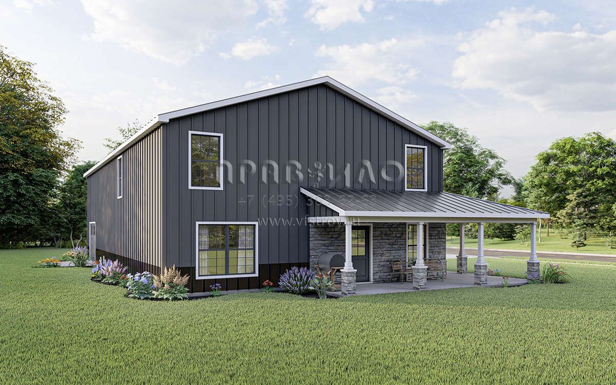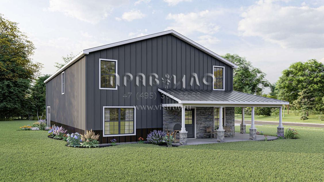 Проект двухэтажного дома с гаражом на три и более машин в стиле БарнХаус S5-201 (5032-00010)